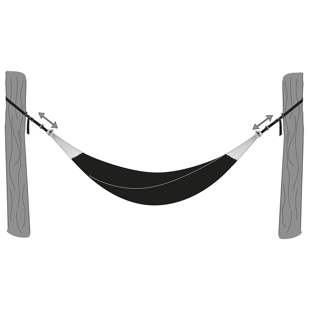 Zu jeder Hängematte gehört auch ein gutes Seilset. Speziell dafür entwickelt sind diese beiden Befestigungsgurte, die praktische Verbindung zwischen Baum und Hängematte aus dem Haus Amazonas. Mit ihrem Haltestift lassen sie sich leicht mit der Hängematte verbinden und verstellen, sind dabei aber dank ihrer 25mm breiten Gurtbänder besonders schonend für Bäume.
