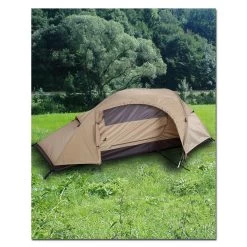 Die Aussenwand dieses Zeltes wird aus einem robusten Mischgewebe aus Polyester-Segeltuch und Canvas gefertigt. Die Grundfläche beträgt 30 m² bei einer Firsthöhe von 3,2 m. Metallene Stützstangen sorgen für einen stabilen und sicheren Stand. Fenster an den Seiten und neben dem Haupteingang sorgen für eine gute Lichtverteilung im Zeltinneren.