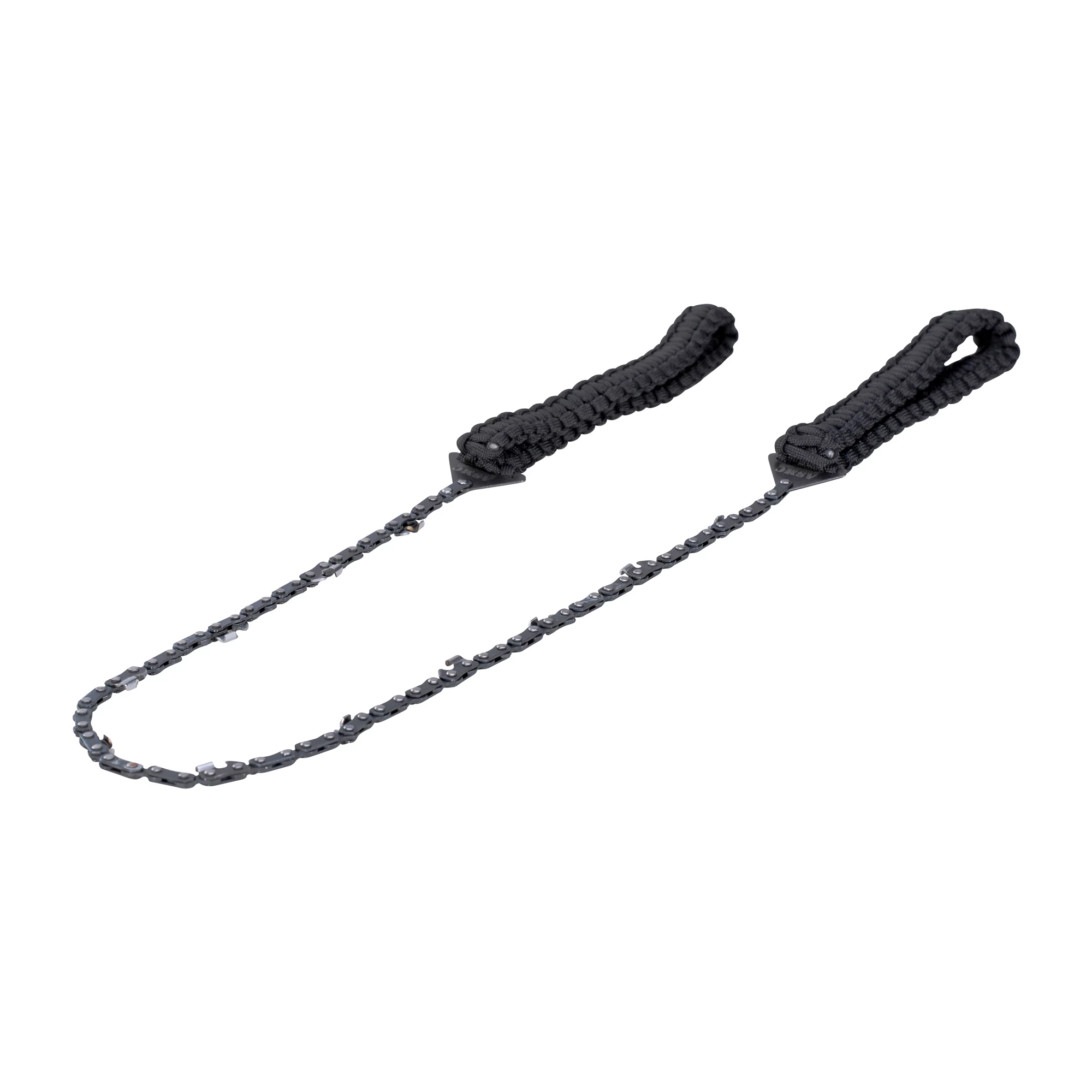 Die ASMC Handkettensäge schwarz erleichtert zahlreiche Arbeiten im Alltag und im Outdoor-Bereich. Die Kette ist äußerst robust und demonstriert auch unter harten Einsatzbedingungen ihre Widerstandsfähigkeit. Zusätzliche Stabilität ergibt sich durch die bequem und sicher in der Hand liegenden Griffe aus Fallschirmleine. Wenn Du die Handkettensäge nicht in Benutzung hast, kannst Du sie in dem im Lieferumfang enthaltenen Etui mit Steckverschluss sicher verstauen. Dieses wird optisch durch ein ASMC-Logo abgerundet.
