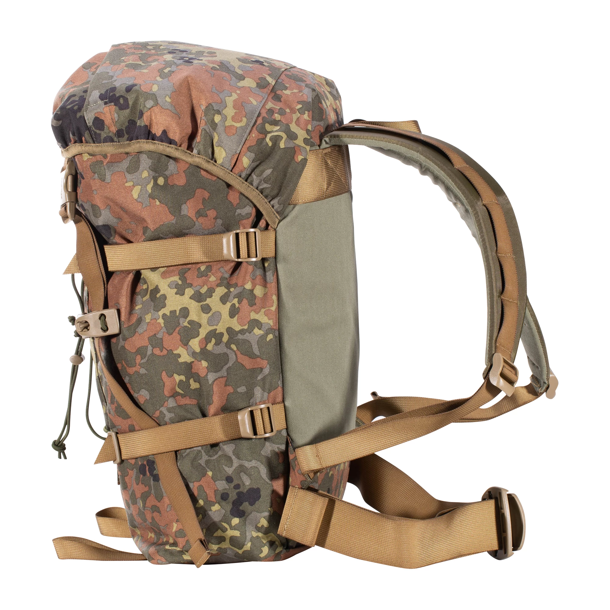 Der Berghaus Rucksack Munro II ist ein robuster Daypack nach militärischen Spezifikationen. Dank integriertem Rahmensystem lässt er sich auch schwer beladen gut tragen. Das gepolsterte Rückensystem und der Beckengurt garantieren dabei einen hohen Tragekomfort. Er kann einfach von oben beladen werden und hat für den Schnellzugriff in der Deckelklappe eine kleine Tasche. An vier Befestigungspunkte kannst Du weitere Ausrüstung anbringen.