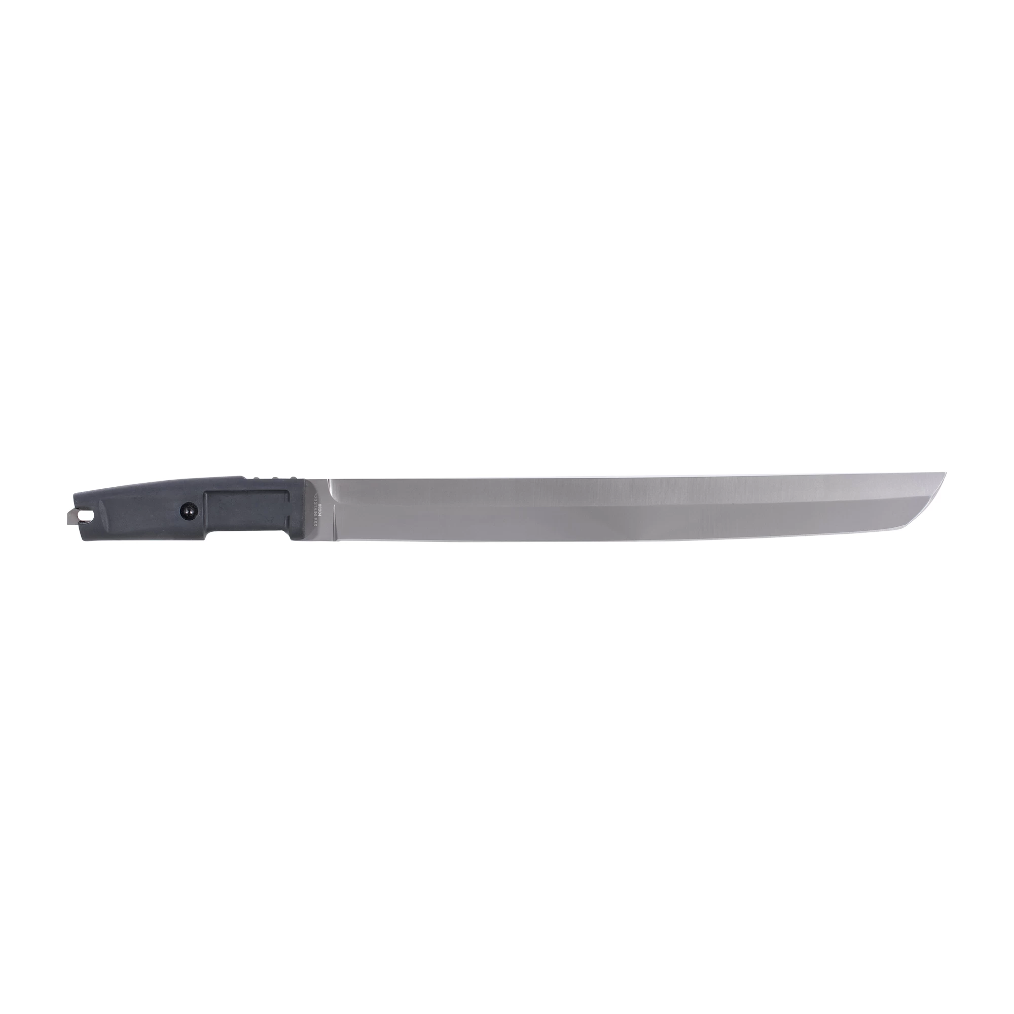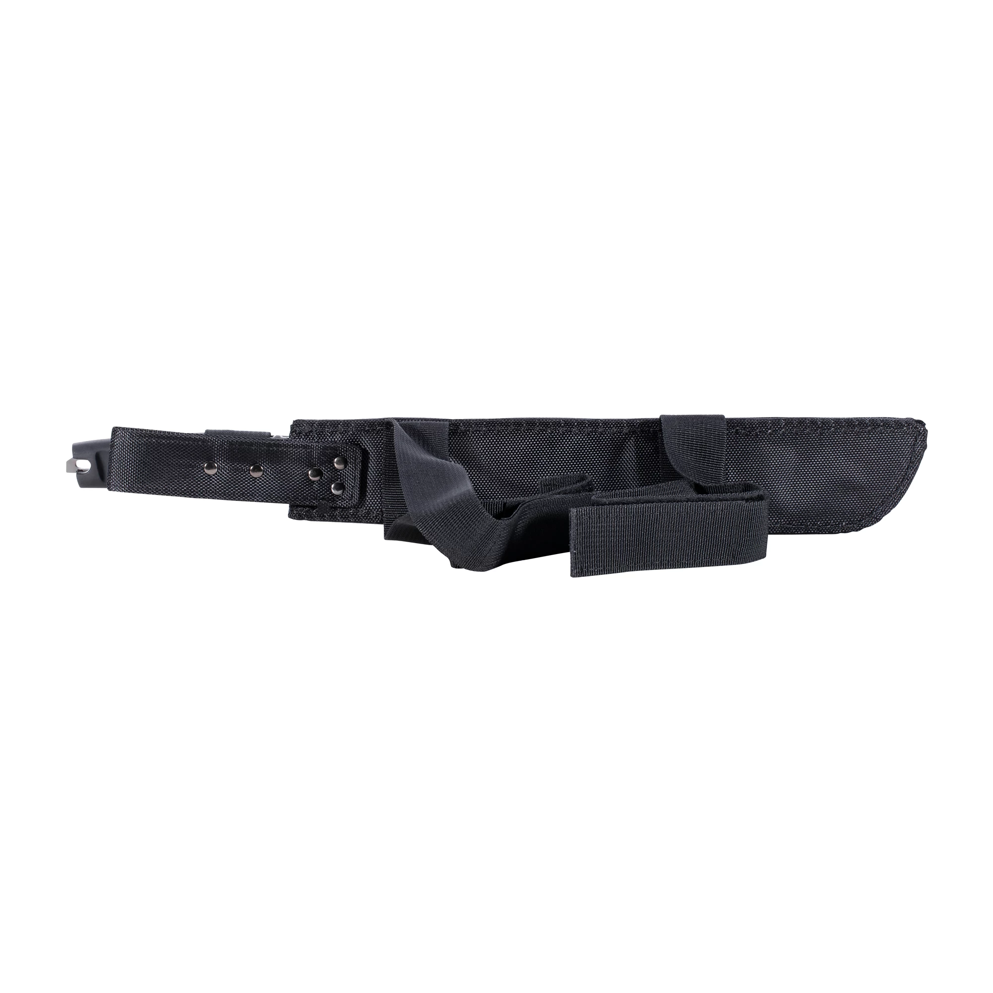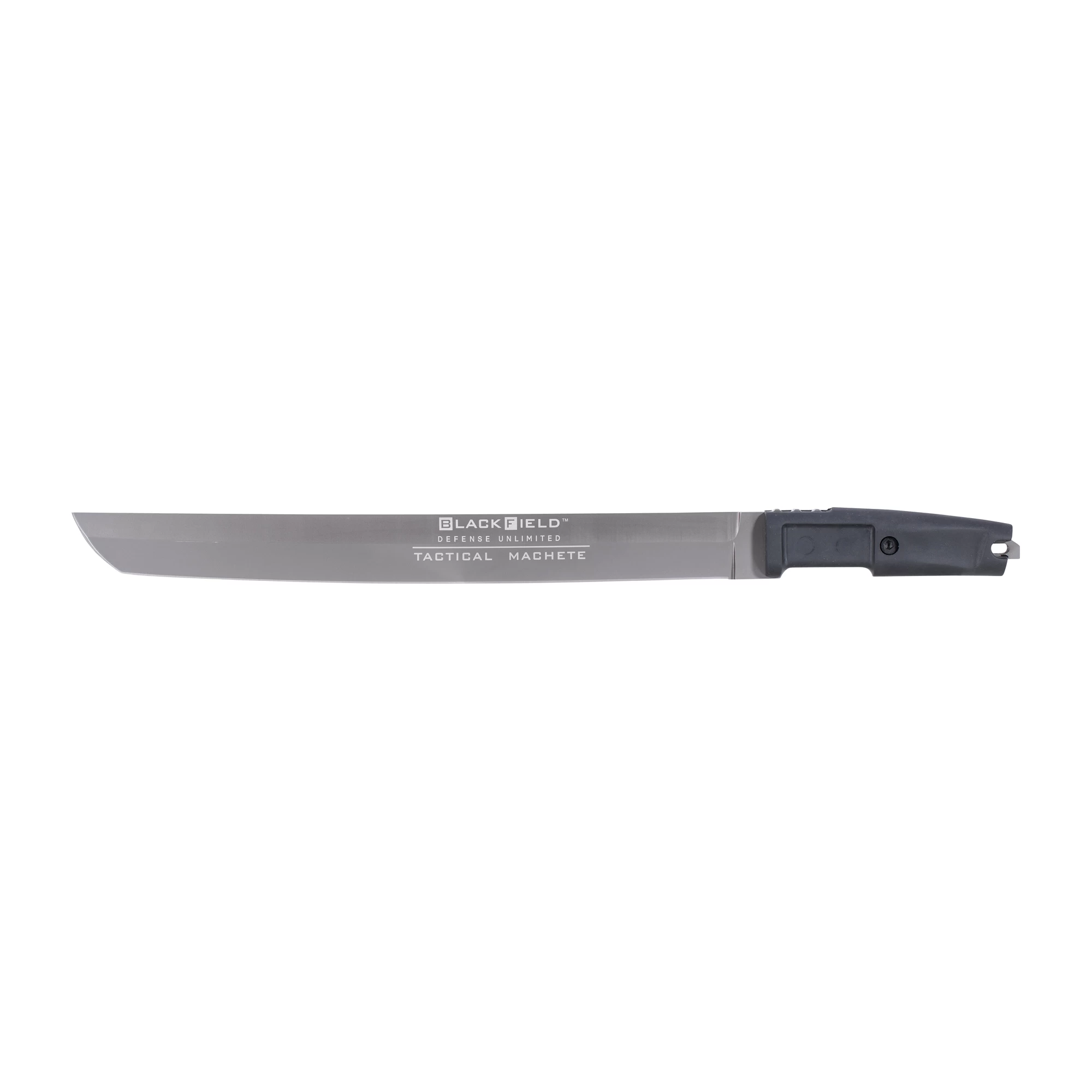 Die Tactical Machete von BlackField ist eine klassische Machete mit titanbeschichteter Klinge. Diese ist an ihrer breitesten Stelle aus 6,5 mm starkem rostfreien 420er Stahl gefertigt und wurde für den taktischen Look schwarz beschichtet. Durch das angenehme Design des Griffs können mit ihr gezielte Hiebe kraftvoll ausgeführt werden, ohne dabei zu schnell zu ermüden. Geliefert wird dieser „Heckenvernichter“ mit einer Nylonscheide mit Druckknopfverschluss.