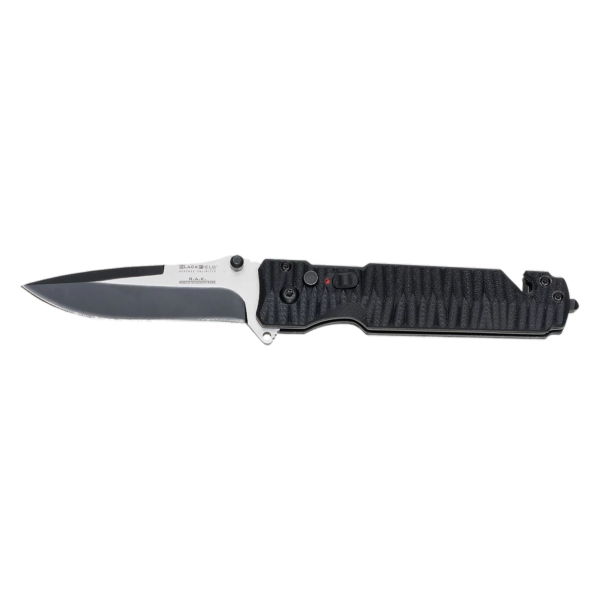 Beim R.A.K (Rescue Automatic Knife) handelt es sich um das erste Rescue Springmesser von Blackfield. Es verfügt über Glasbrecher und Gurtschneider und sollte somit in keinem Auto oder in Ihrem EDC fehlen. Die Spearpoint-Klinge ist teilweise schwarz beschichtet, was dem Messer ein interessantes Aussehen verleiht. Die Klingensicherung verhindert das versehentliche Aufspringen der Klinge. Ist der rote Punkt sichtbar, kann die Klinge geöffnet werden.
