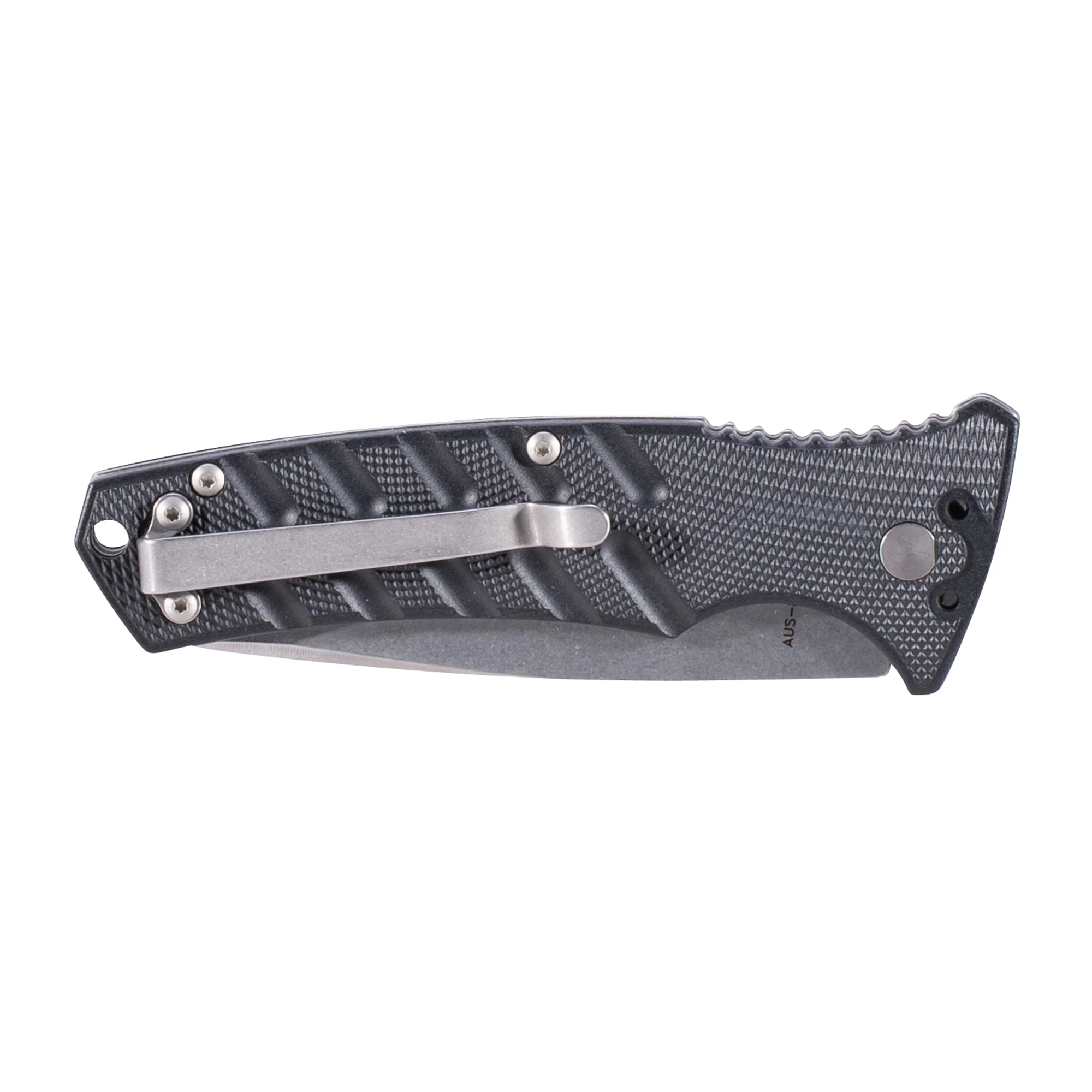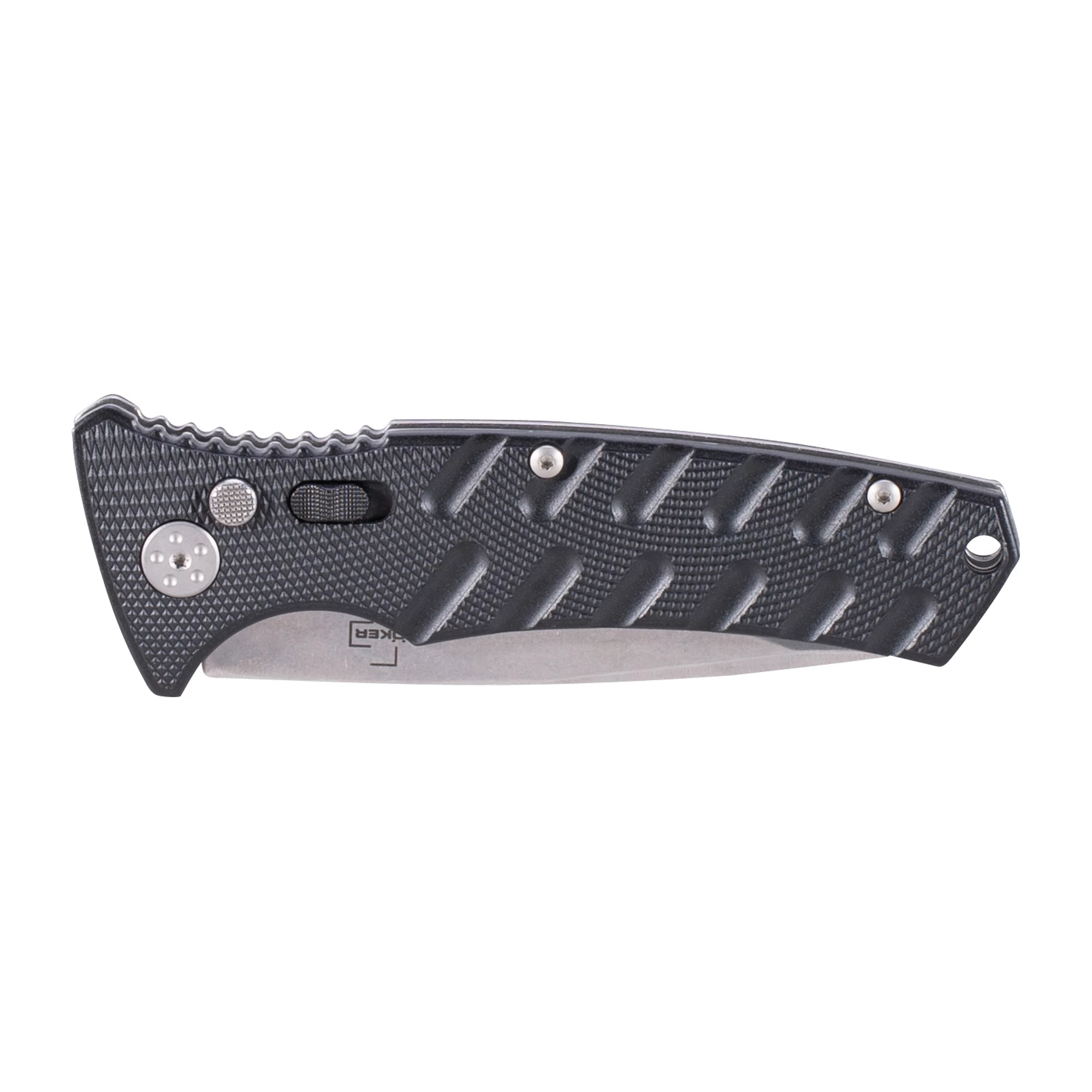 Das Böker Plus Taschenmesser Strike Droppoint ist ein robustes Springmesser für den Alltag. Der ergonomisch geformte Griff mit tiefen Rillen im Bereich der Daumenmulde erhöht die Arbeitssicherheit, während eine Schiebe-Konstruktion das geschlossene Messer zusätzlich gegen versehentliches Aufklappen sichert. Gleichzeitig überzeugt es mit geringem Gewicht und großer Stabilität. Der umsetzbare Clip (Tip-up/Tip-down) vervollständigt die Ausstattung.