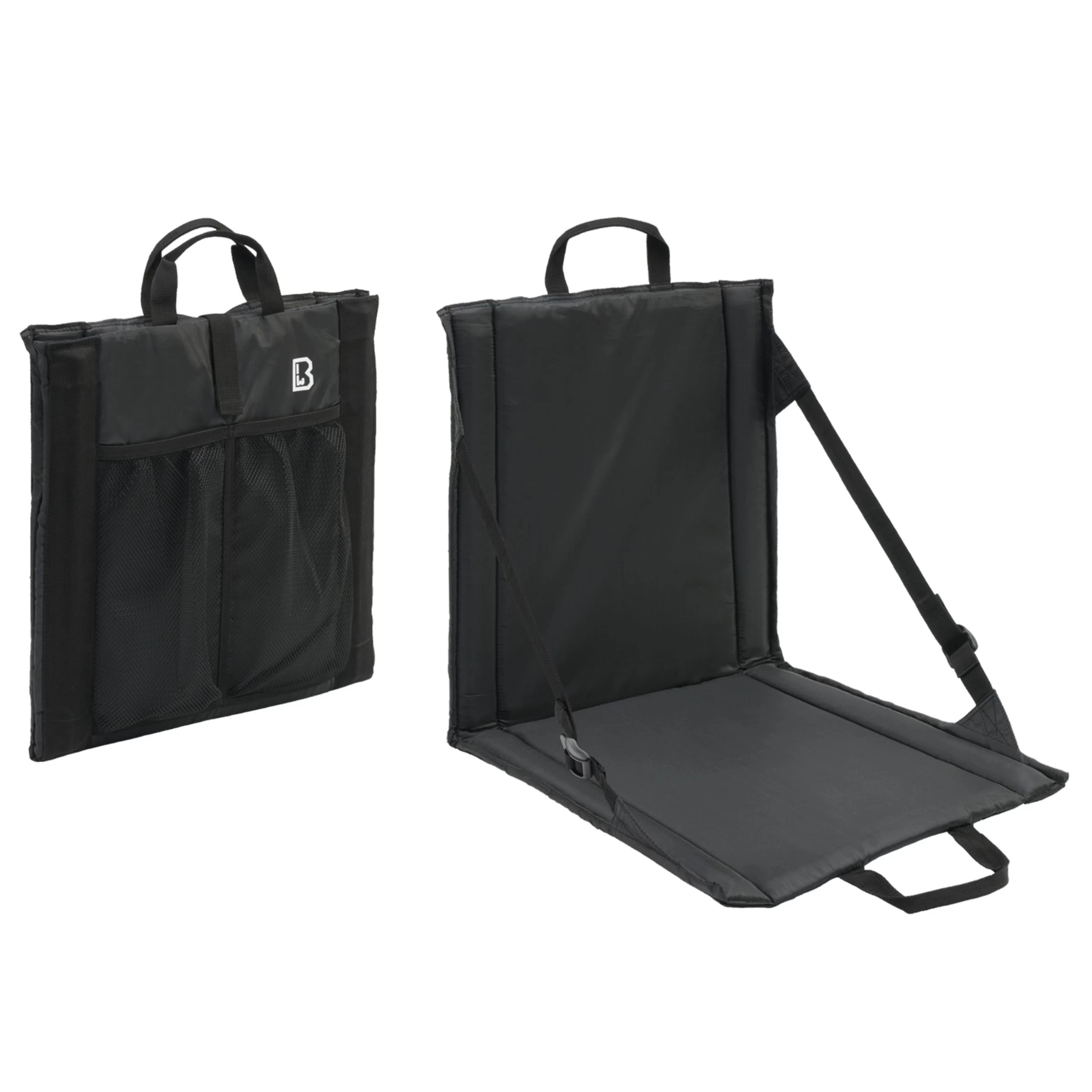 Der Brandit Faltsitz Foldable Seat schwarz ist ein faltbarer Sitz mit Rückenlehne, der ideal für Campingurlaub, Wanderausflüge, Strandurlaube oder Festivals geeignet ist. Er bietet eine bequeme Sitzgelegenheit und Schutz vor Kälte, Nässe und Schmutz, die Sitzfläche ist im Winkel einstellbar. Das robuste Polyester-Material lässt sich leicht reinigen und dank zusammenfaltbarer Form mit zwei Tragegriffen platzsparend transportieren.