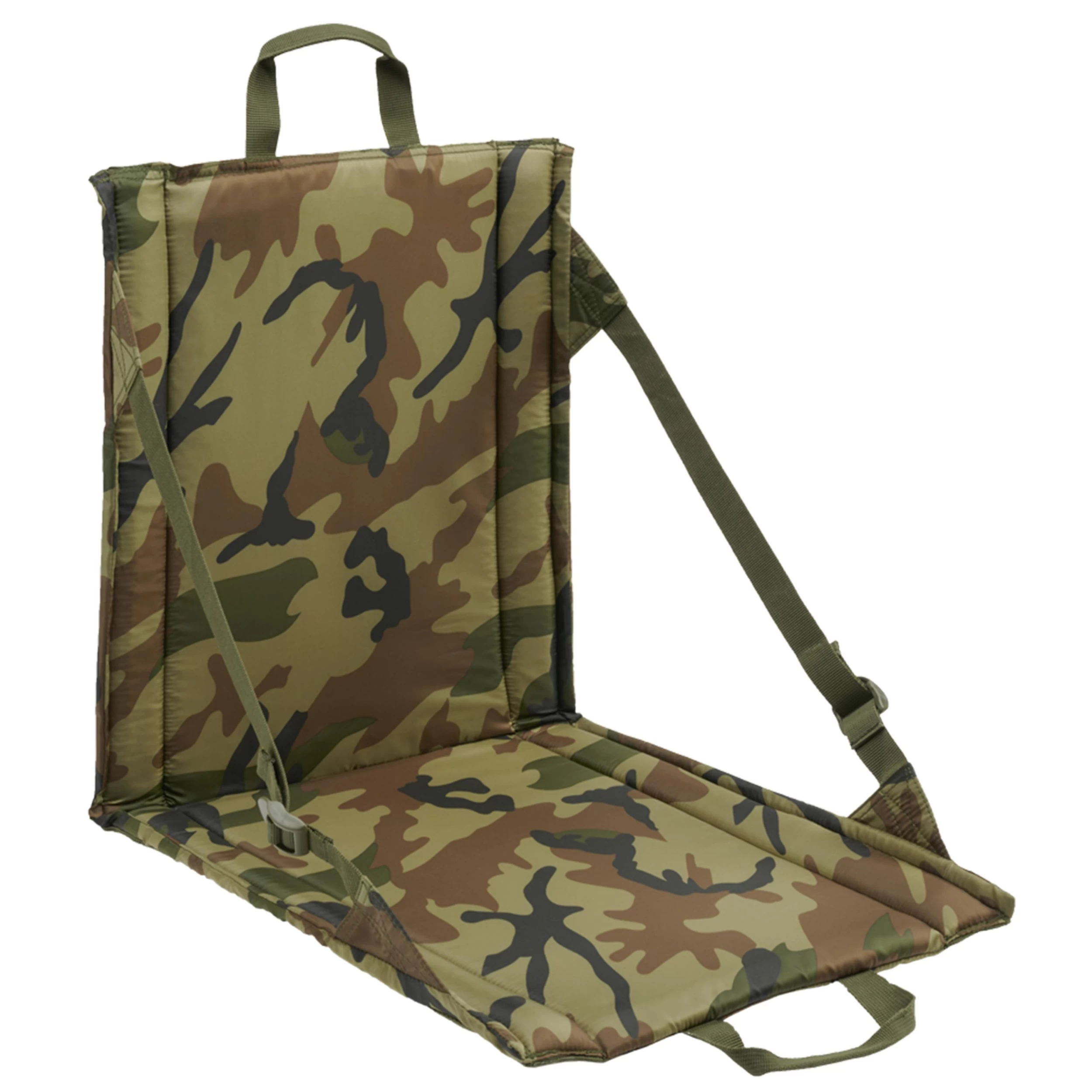 Der Brandit Faltsitz Foldable Seat woodland ist ein faltbarer Sitz mit Rückenlehne, der ideal für Campingurlaub, Wanderausflüge, Strandurlaube oder Festivals geeignet ist. Er bietet eine bequeme Sitzgelegenheit und Schutz vor Kälte, Nässe und Schmutz, die Sitzfläche ist im Winkel einstellbar. Das robuste Polyester-Material lässt sich leicht reinigen und dank zusammenfaltbarer Form mit zwei Tragegriffen platzsparend transportieren.