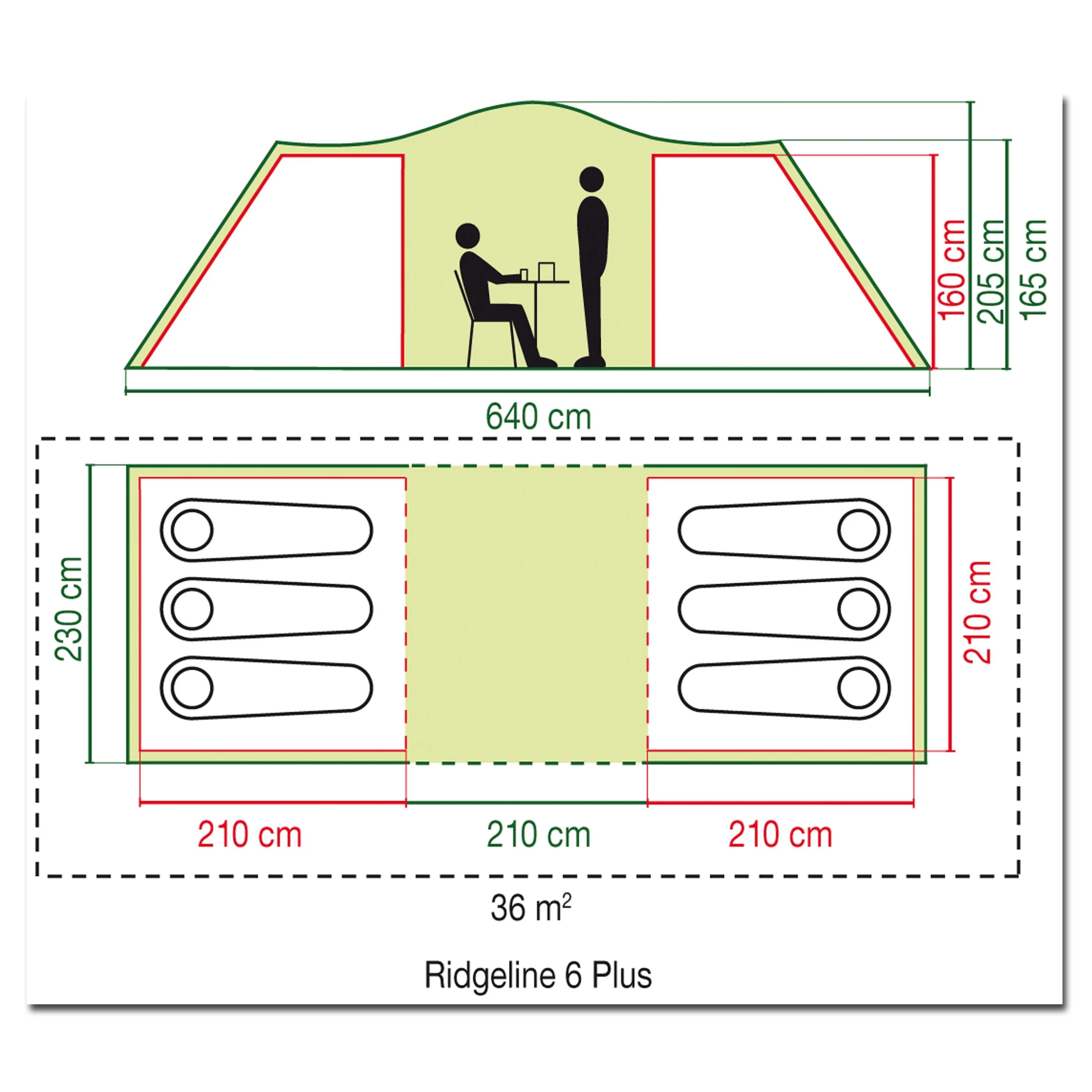 Das Coleman Zelt Ridgeline 6 Plus oliv hat einen Wohnbereich mit ausreichend Kopffreiheit dank zentraler Kuppelkonstruktion. Die beiden gegenüberliegenden Schlafkabinen garantieren ein Maximum an Privatsphäre und sind aufgrund der Tunnelkonstruktion besonders windstabil. Die Zelte eignen sich besonders gut für längere Campingaufenthalte.