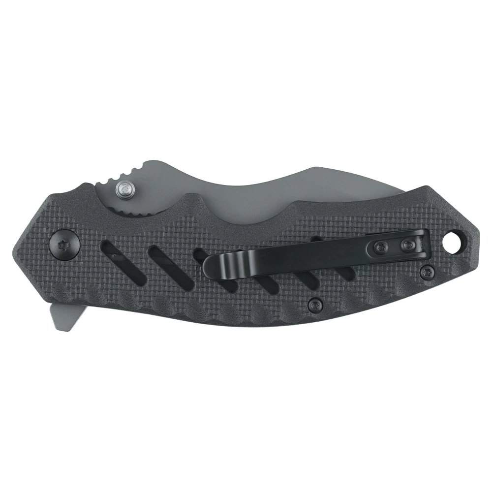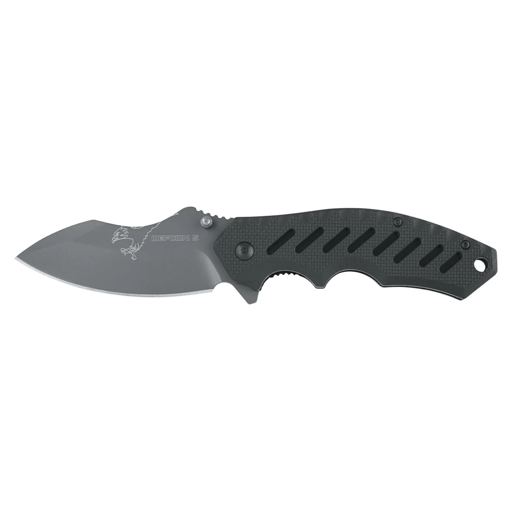 Das praktische Defcon 5 Taschenmesser Tactical Folding Knife India schwarz setzt sich aus einem schwarzen GFN-Griff und einer stabilen Klinge mit Teilverzahnungen aus 8Cr13MOV-Stahl zusammen. Letzteres bringt den Vorteil eines sehr guten Preis-Leistungs-Verhältnisses mit. Der Liner Lock-Verschlussmechanismus macht den Gebrauch sicher, während der integrierte Daumenbolzen das Öffnen des taktischen Klappmessers erleichtert. Der Taschenclip und das Defcon 5-Logo auf der Klinge runden dieses Tool perfekt ab.