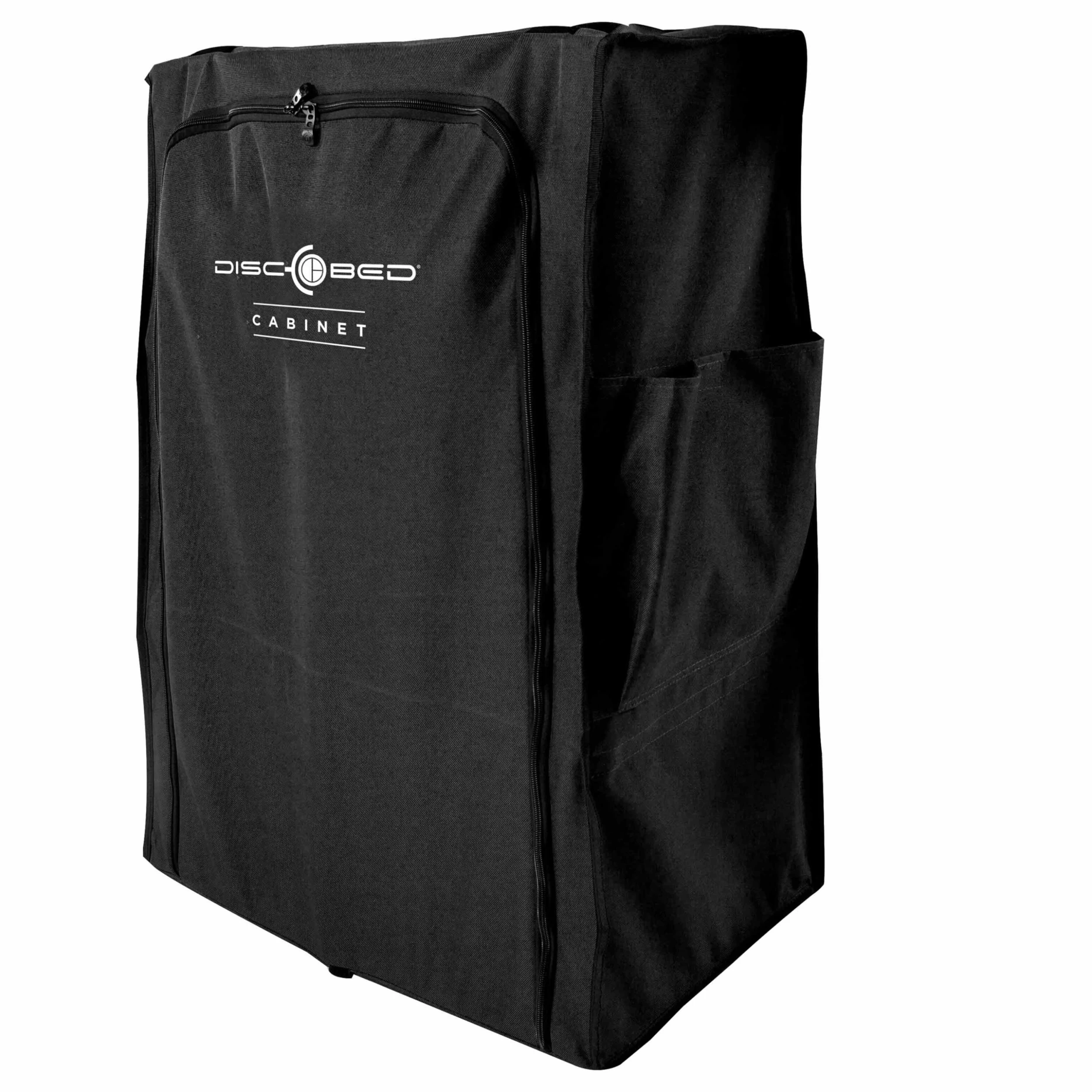 Der praktische mobile Kleiderschrank lässt sich mittels Gurten am Feldbett anbringen. So haben Sie selbst unterwegs auf Camping-Reisen oder Ihre Gäste genügend Platz, Ausrüstung und Bekleidung sinnvoll unterzubringen. Die Innenfächer ermöglichen die individuelle Beladung der Garderobe, können aber auch leicht herausgenommen werden. Platzsparend zusammengefaltet und in passender Tragetasche verstaut, ist das Disc-O-Bed Cabinet die ideale Vervollständigung zum Feldbett.
