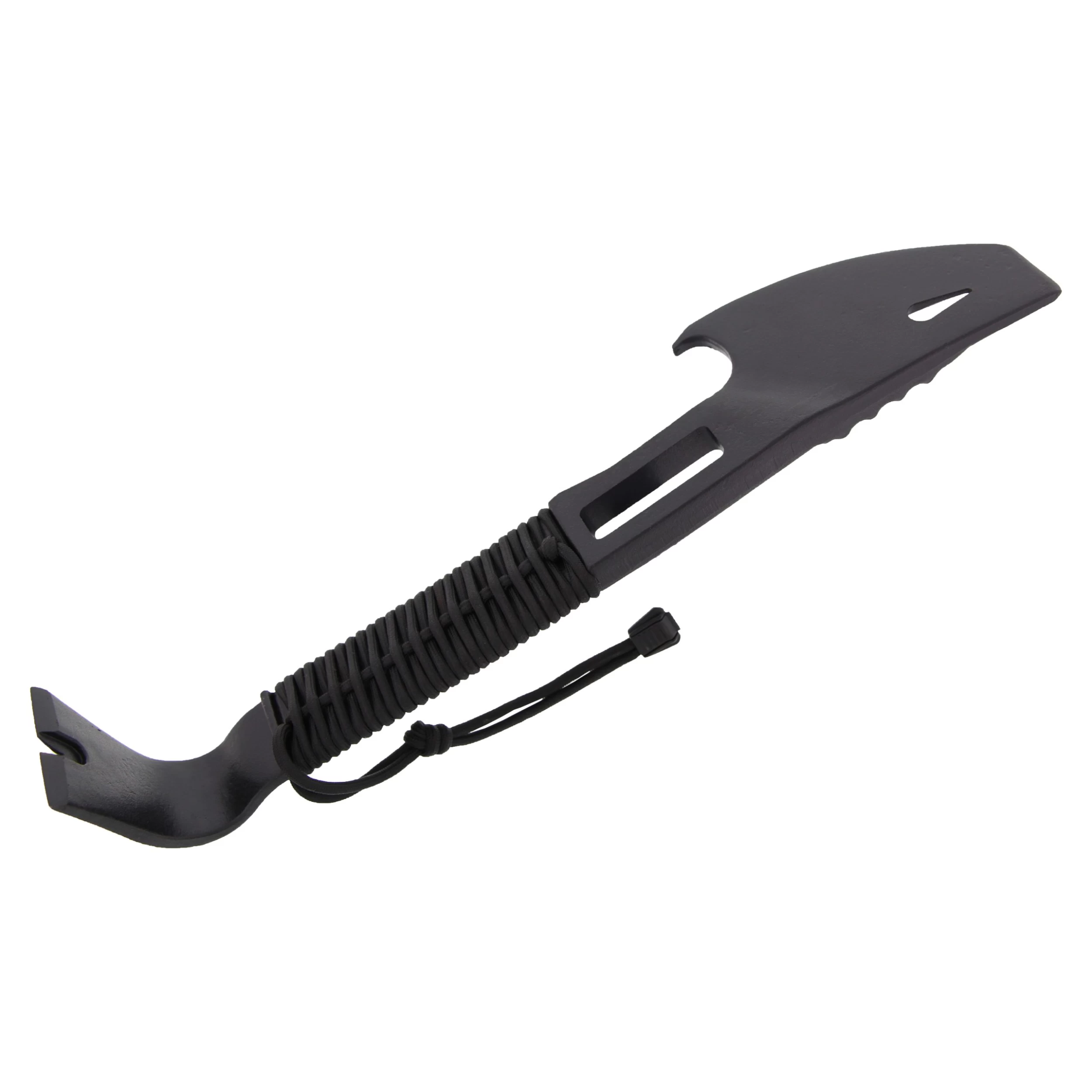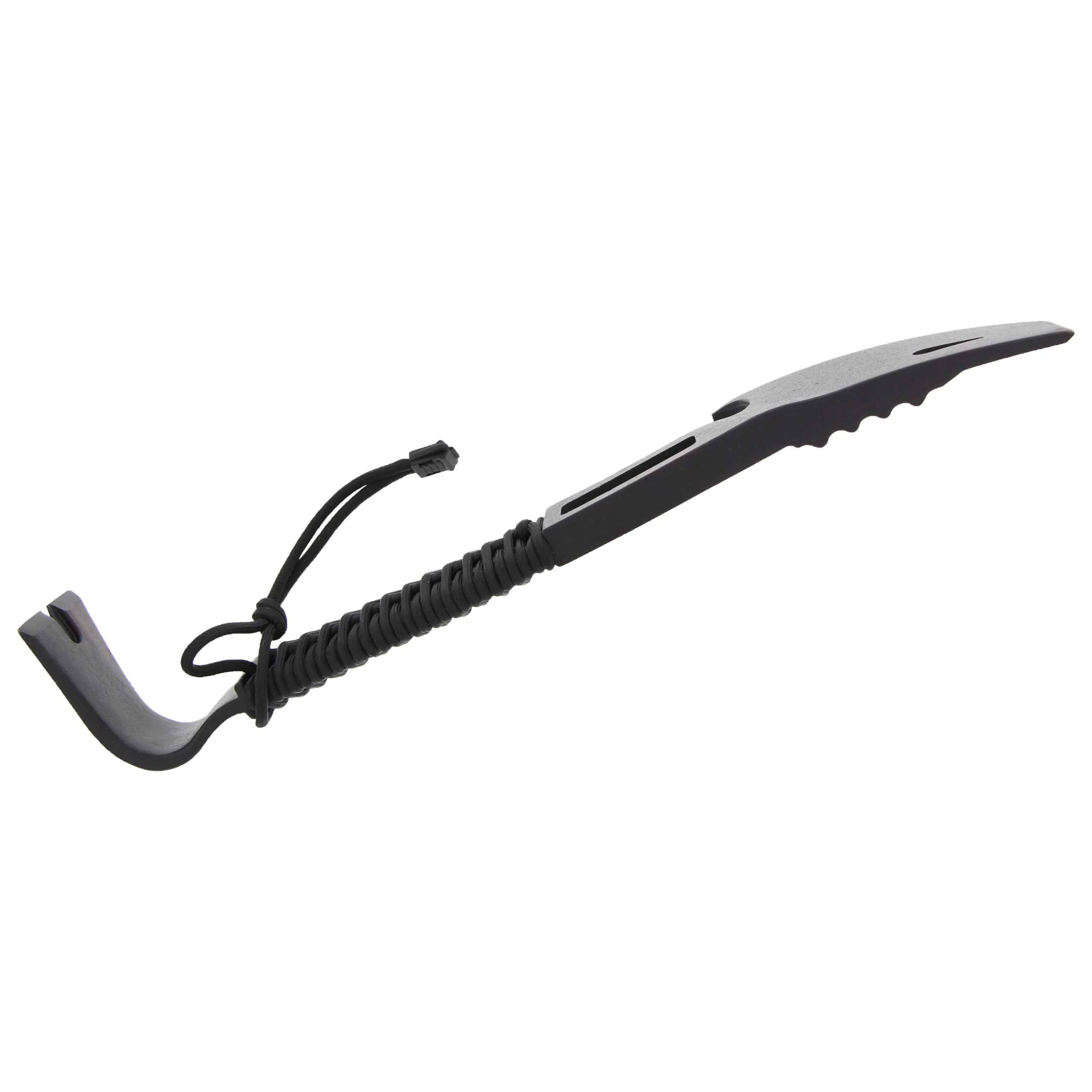 Das Demolition Tool überzeugt mit funktionellen Eigenschaften und darf bei keiner Survival- oder Outdoor-Unternehmung fehlen. Es eignet sich ebenso für Polizei und Security oder als Backup-Werkzeug im Auto. Der Griff wurde mit einer Fallschirmleine umwickelt, was für zusätzliche Griffigkeit und Stabilität sorgt, ebenfalls kann es im Notfall als Seil verwendet werden.