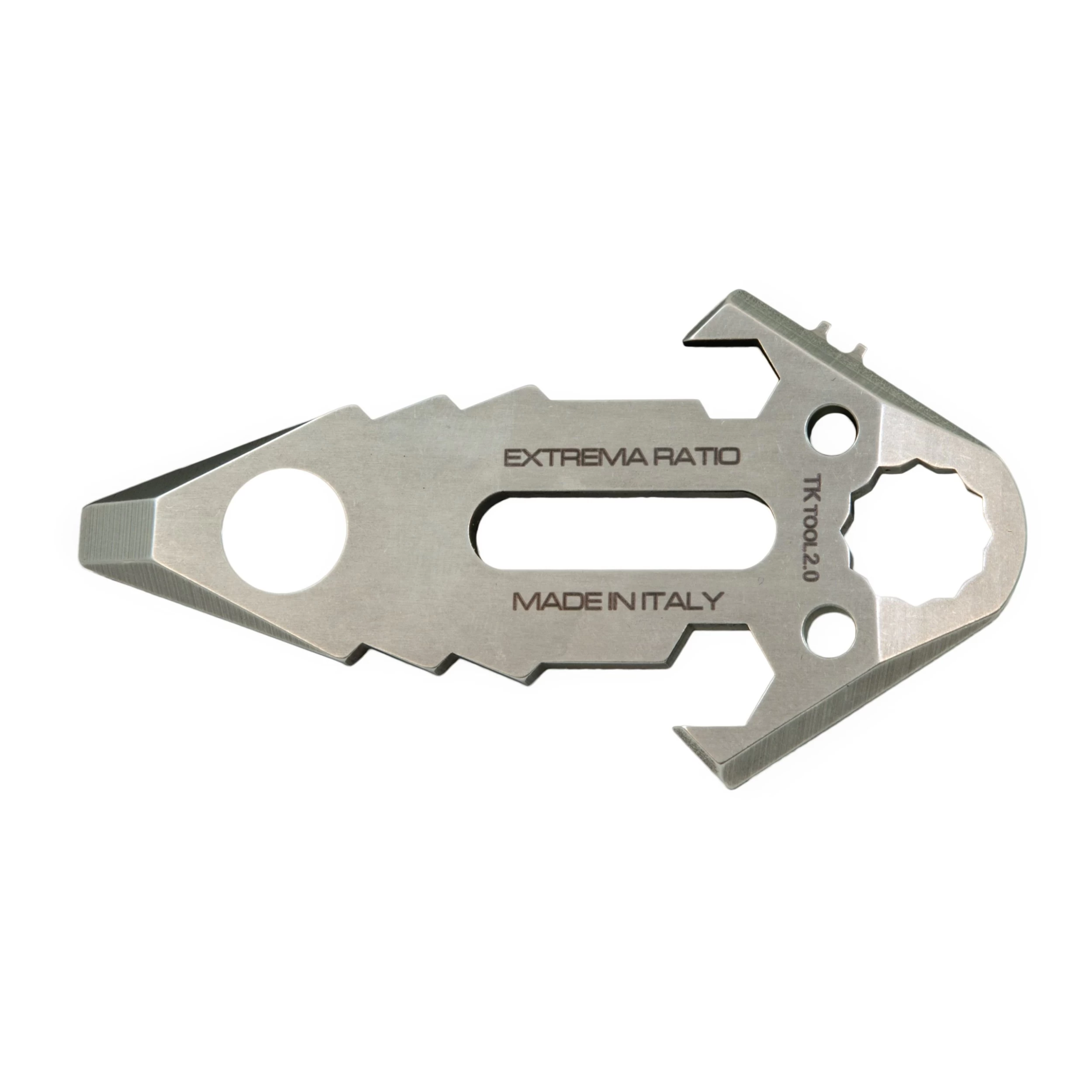 Beim Extrema Ratio TK Tool 2.0 stone washed handelt es sich um ein Multifunktionswerkzeug, das aus einem Stück gefertigt ist. Der vordere Teil dient als Schraubenzieher oder Hebel. Die Lanyard-Löcher ermöglichen das Anbringen von Fallschirmleine, um das Tool bei sich führen zu können oder um den Hals zu hängen.