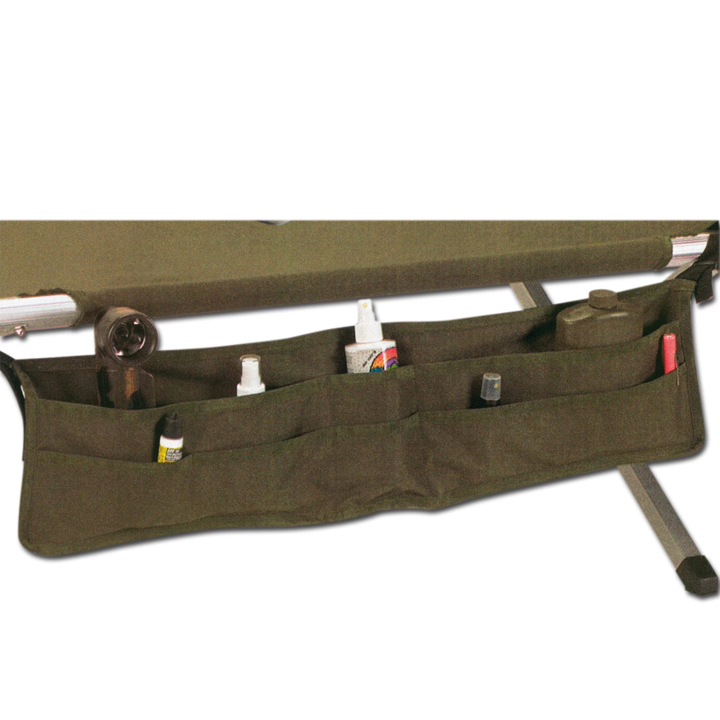 Feldbett Organizer aus Polyester mit verschiedenen Taschen für Toilettenartikel o.ä.