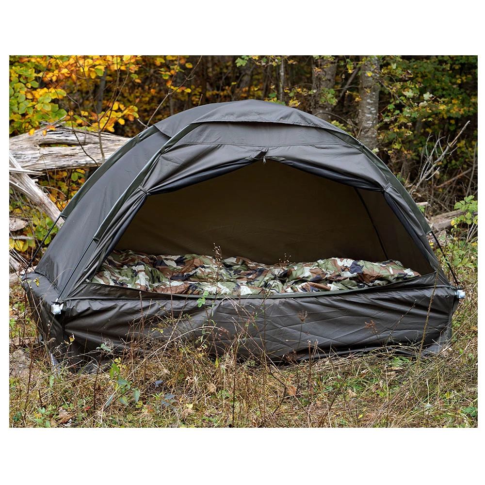 Das leicht zu montierende Fosco Feldbettenzelt bietet idealen Schutz vor Sonne, Wind und Regen für Dein Feldbett. Es hält Dich und Deine Ausrüstung dank des PU-beschichteten Gewebes trocken. Die verlängerten Seitenwände ergeben einen Abstellplatz für Schuhe und Gepäck, sodass diese ebenfalls vor Wind und Regen geschützt werden. Das Zelt wird mit Klettstreifen an der Schlafunterlage montiert und hält zusätzlich dank integriertem Netzmaterial Insekten und Mücken fern.