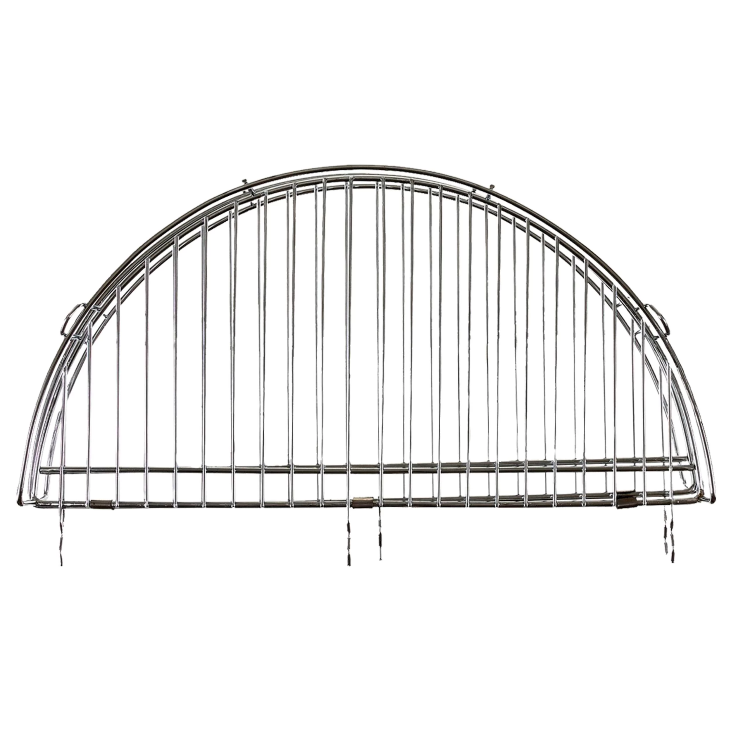 Praktischer, platzsparender Grillrost mit stabiler Gliederkette. Diese ist an 4 Punkten am Rost befestigt und gewährt eine sichere Aufhängung. Eine zusätzliche Kette mit 2 Haken dient der Höhenregulierung.