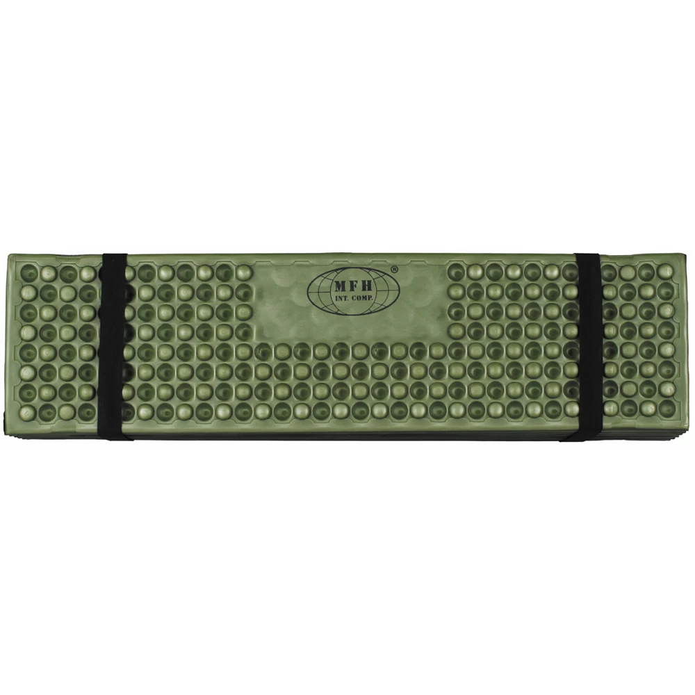 Praktische Thermomatte aus robustem Spezialschaumstoff. Die rutschhemmende und hervorragend isolierende Noppenstruktur schützt bei kalten Temperaturen. Mit zwei Transport-Gummibändern.
