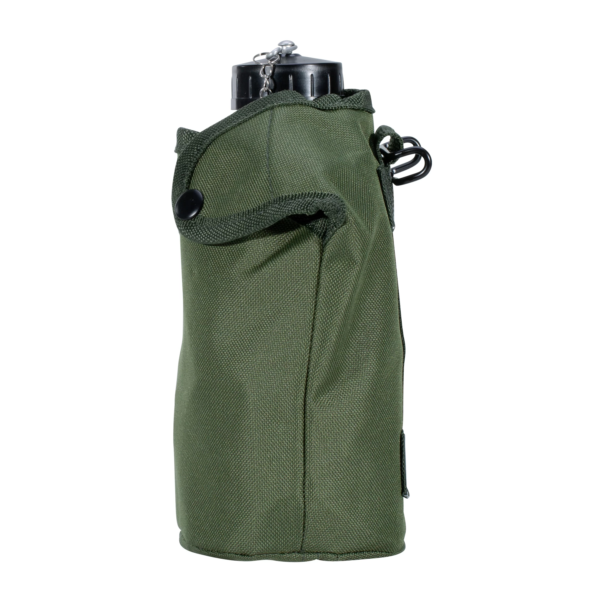 Eine französische Aluminium-Feldflasche mit Schraubverschluss. Lieferung inklusive Feldflaschenhülle aus Baumwolle und einem praktischen Aluminiumbecher.