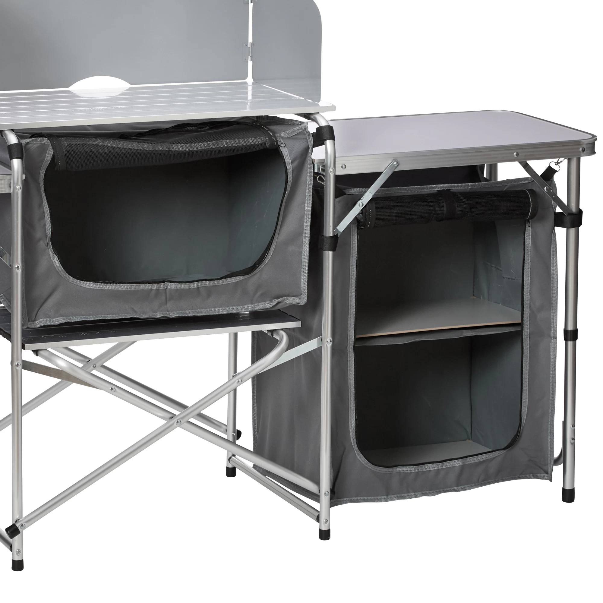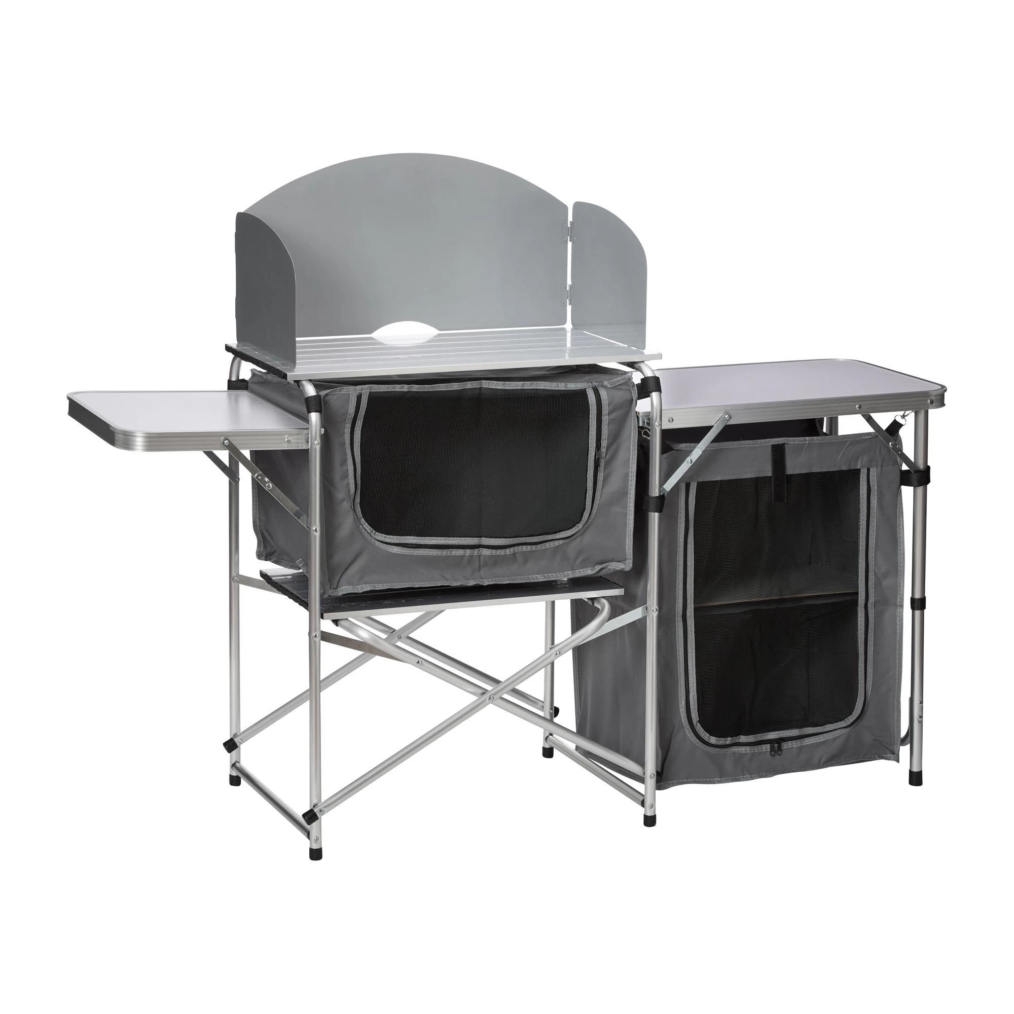 Der HI Campingtisch mit Aluminiumrahmen ist ideal für den Outdoor-Bereich. Er ist wetterfest und schwer belastbar. Benutzt Du ihn nicht, kann er platzsparend zusammengefaltet werden. Der praktische Windschutz rundet ihn ab.
