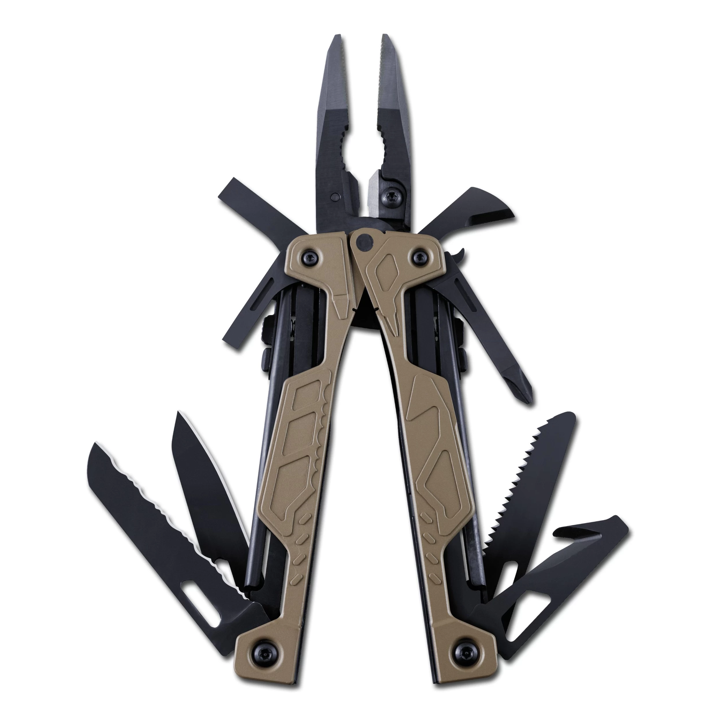 Das Leatherman Multitool One Hand coyote ist ein Multifunktionswerkzeug mit Einhandbedienung. Prägungen auf den Griffen erleichtern das Finden des benötigten Werkzeugs enorm. Die Griffe sind mit Cerakote beschichtet, einer keramikbasierten Beschichtung mit Korrosionsschutz, extremer Härte und hoher Haltbarkeit.