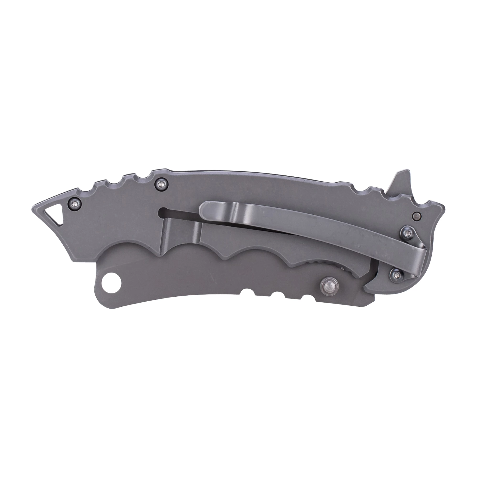 Das Magnum Taschenmesser Mortem sticht optisch durch den auf der Vorderschale abgebildeten Totenknopf heraus. Während Sie die Klinge aus 440A entweder mit Flipper oder beidseitigem Daumenpin öffnen können, gewährleistet der Griff mit ausgeprägten Riffelungen im Bereich der Daumenauflage erhöhte Arbeitssicherheit. Der integrierte Clip (Tip-down) und die Fangriemenöse vervollständigen die Ausstattung.