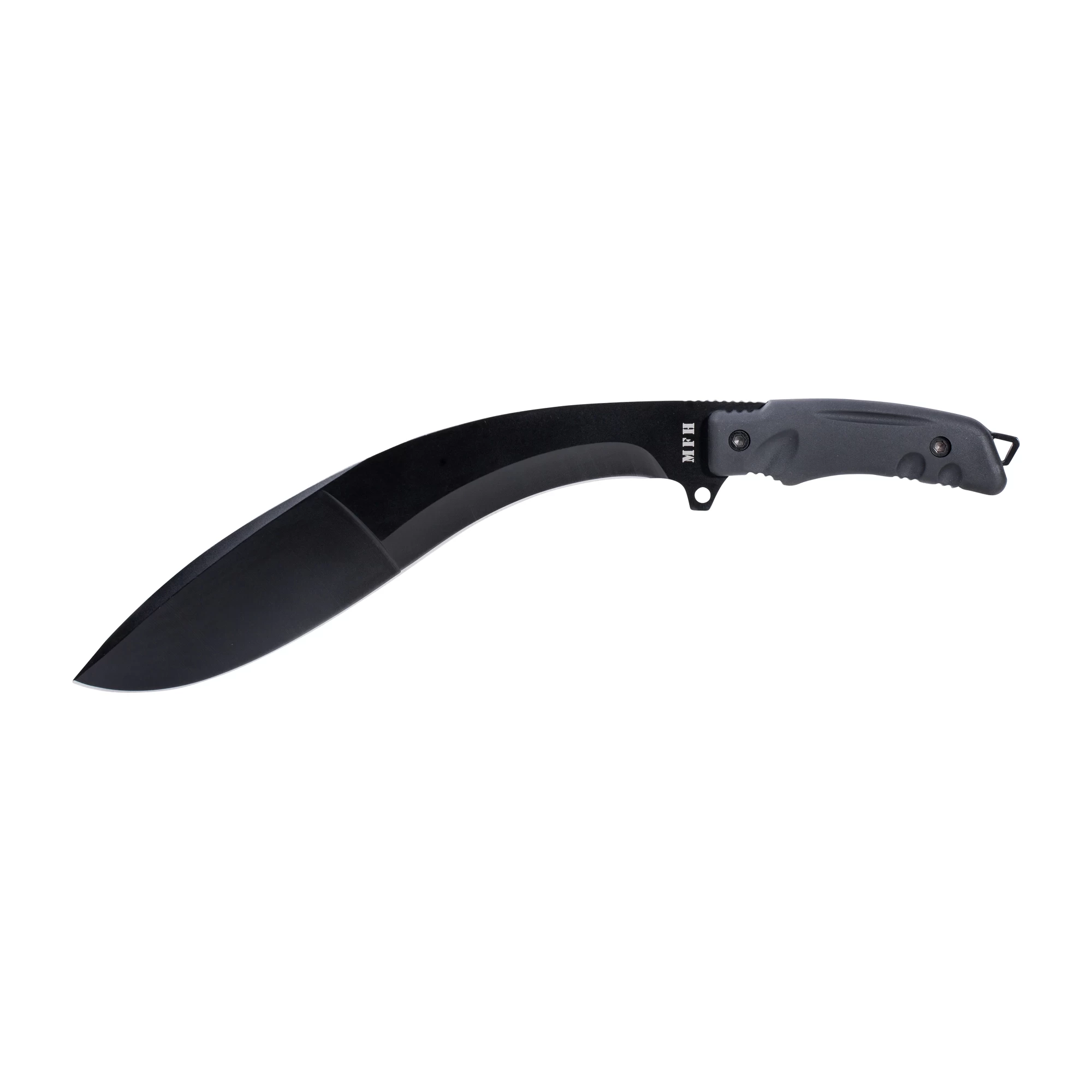 Die MFH Machete Kukri schwarz überzeugt mit einem ergonomisch geformten Griff aus stabilem ABS Kunststoff. Auf diese Weise ist beispielsweise ein sicheres Arbeiten garantiert und es wird vermieden, dass Dir die Machete aus der Hand rutscht. Außerdem ist er mit Ösen am Griff vorne und hinten und zwei verstellbaren Beingurten ausgestattet.