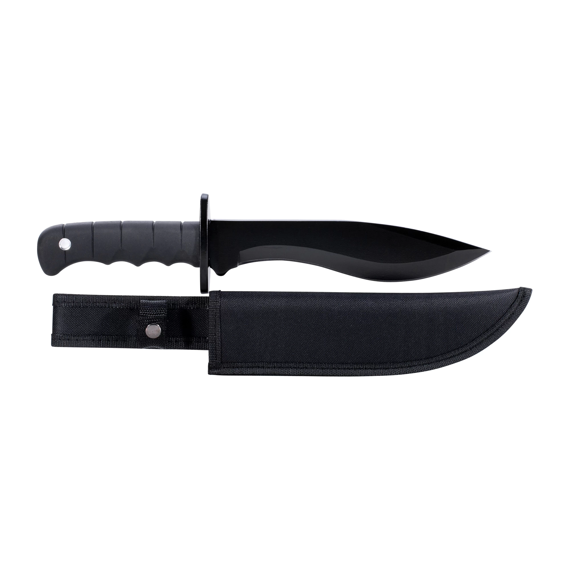 Ein preiswertes Messer, das perfekt in der Hand liegt und mit dem sich daher optimal arbeiten läßt. Das Kampfmesser hat einen Fingermuldengriff aus Aluminium mit einer speziellen glatten Oberfläche und einer Öse für einen Fangriemen. Die Parierstange schützt die Hand zuverlässig vor Verletzungen. Die geschwungene Klinge weist eine schwarze Beschichtung auf und hat eine Stärke von 4,5 mm. Inklusive Gürtelscheide aus Nylon.