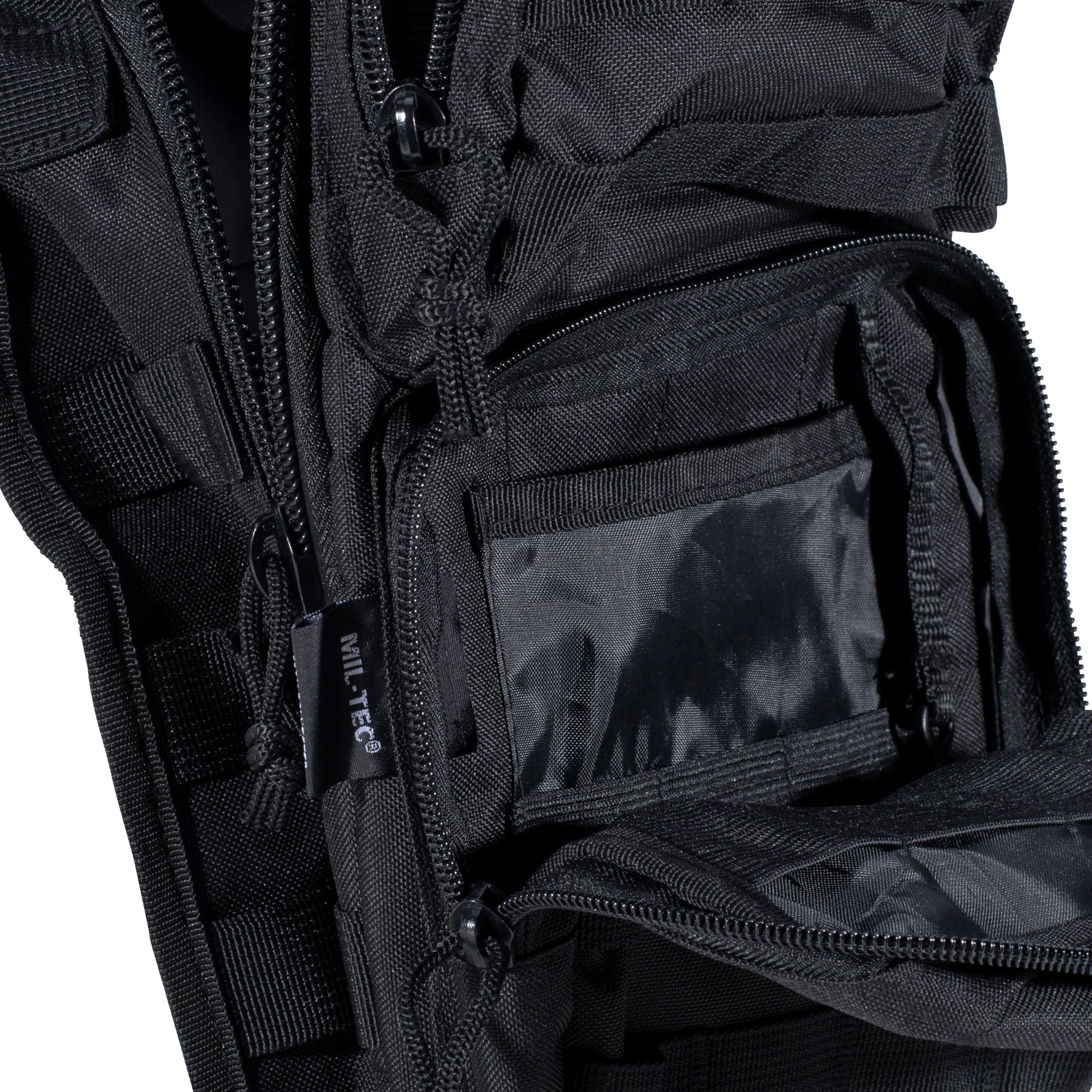 Das große Hauptfach des Mil-Tec Rucksacks verfügt über drei innenliegende Fächer mit Klett und Reißverschluss, in denen alles sicher verstaut werden kann. Eine Fronttasche mit Organizer und zusätzliches Fach mit Reißverschluss bieten weitere Möglichkeiten zur Aufbewahrung von Kleinteilen. Alle Fächer sind mit 2-Wege-Reißverschlüssen ausgestattet, die ein schnelles Öffnen und Schließen ermöglichen. Die diversen Molle-Aufnahmepunkte des Mil-Tec Rucksacks erlauben es, zusätzliches Equipment anzubringen und den Rucksack indiviDuell zu gestalten.