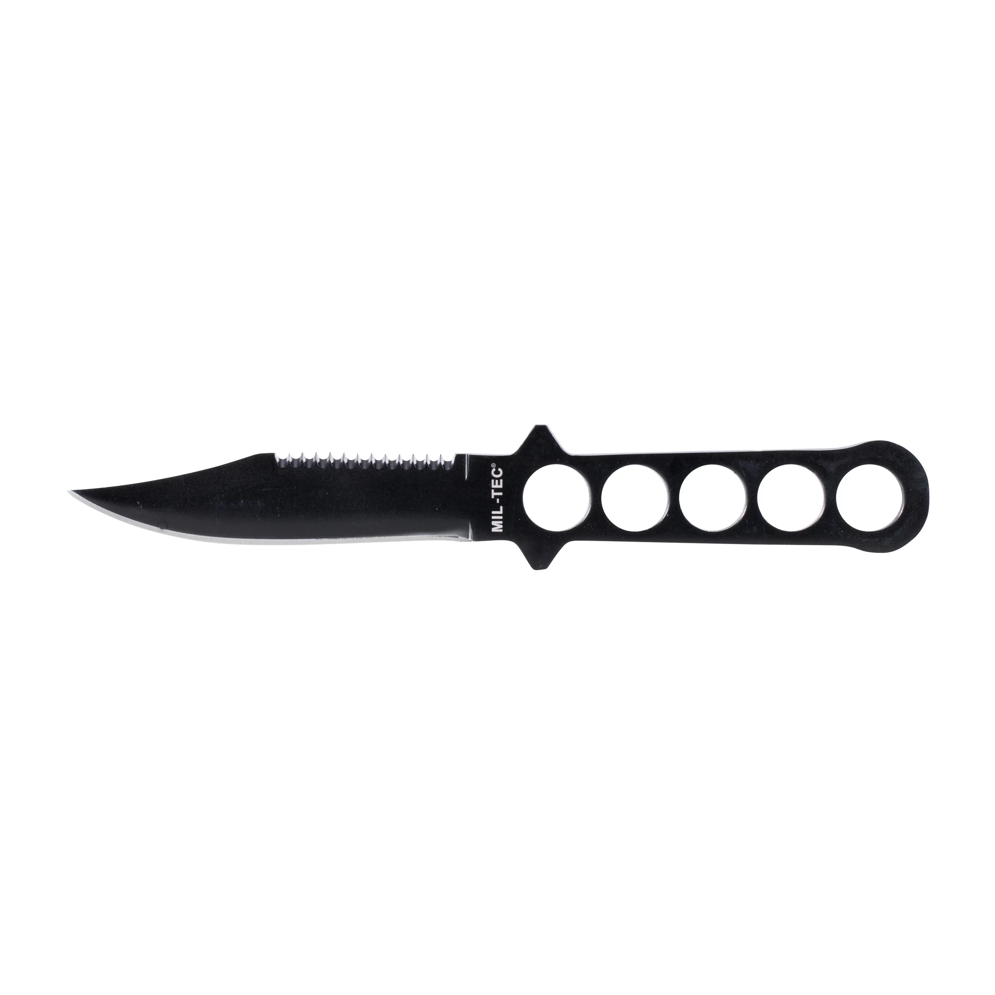 Einfaches, preisgünstiges Tauchermesser mit beidseitig geschliffener Klinge, die auf einer Seite zur Hälfte mit einer Sägezahnung versehen ist. Die flache Konstruktion in Verbindung mit den großen Öffnungen im Griff reduzieren das Gewicht auf ein Minimum. Die Kunststoffscheide hat einen Arretierungsmechanismus, der das Messer zuverlässig in Position hält. Zur Befestigung am Bein dienen die beiden verstellbaren Gummibänder.