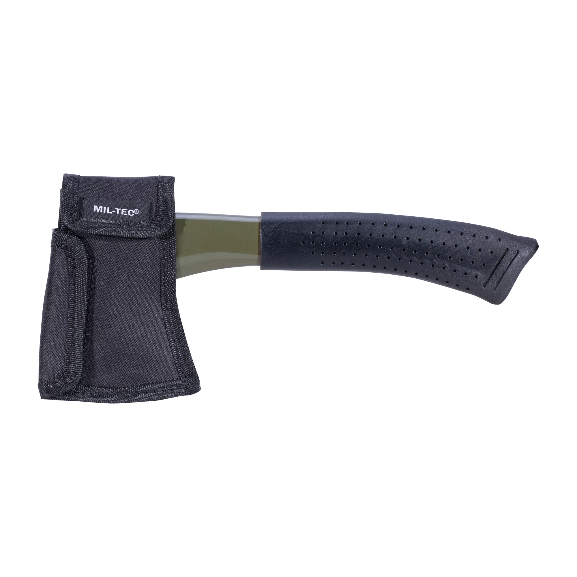 Die Mil-Tec Vollstahlaxt mit Kopftasche oliv ist ein zuverlässiges Werkzeug. Sie zeichnet sich durch ihren gummierten Griffteil aus, welcher eine gute Handhabung garantiert. Die Rückseite des Beils kann als Hammer verwendet werden. Im Lieferumfang ist eine schützende Scheide enthalten. Die ist mit zwei 4 cm breiten Gürtelschlaufen versehen. Zwei Klettflächen dienen als Verschluss.