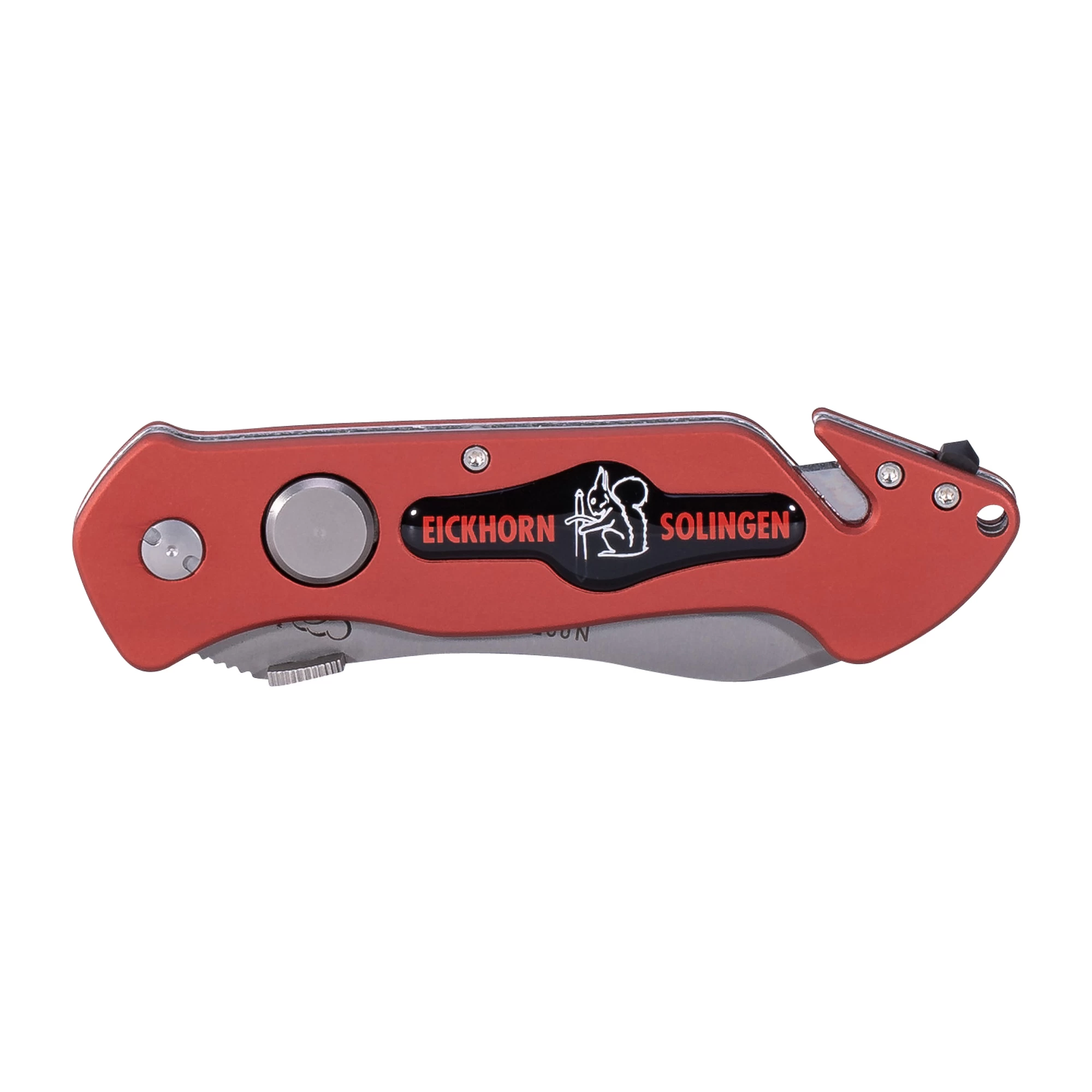 Ein kompaktes, leichtes und zuverlässiges Taschenmesser für Noteinsätze und Personal-Rescue Teams (PRT). Klinge aus 440 A Stahl mit scharfer Teilsägezahnung und extra grossem Daumenöffner, der auch mit Handschuhen bedient werden kann.Nach dem Öffnen der Klinge ist diese über eine Platine blockiert. Die Entriegelung erfolgt durch den Druckknopf im Griff, der ebenfalls mit Handschuhen betätigt werden kann. Integrierter Gurtschneider und Scheibenzertrümmerer.