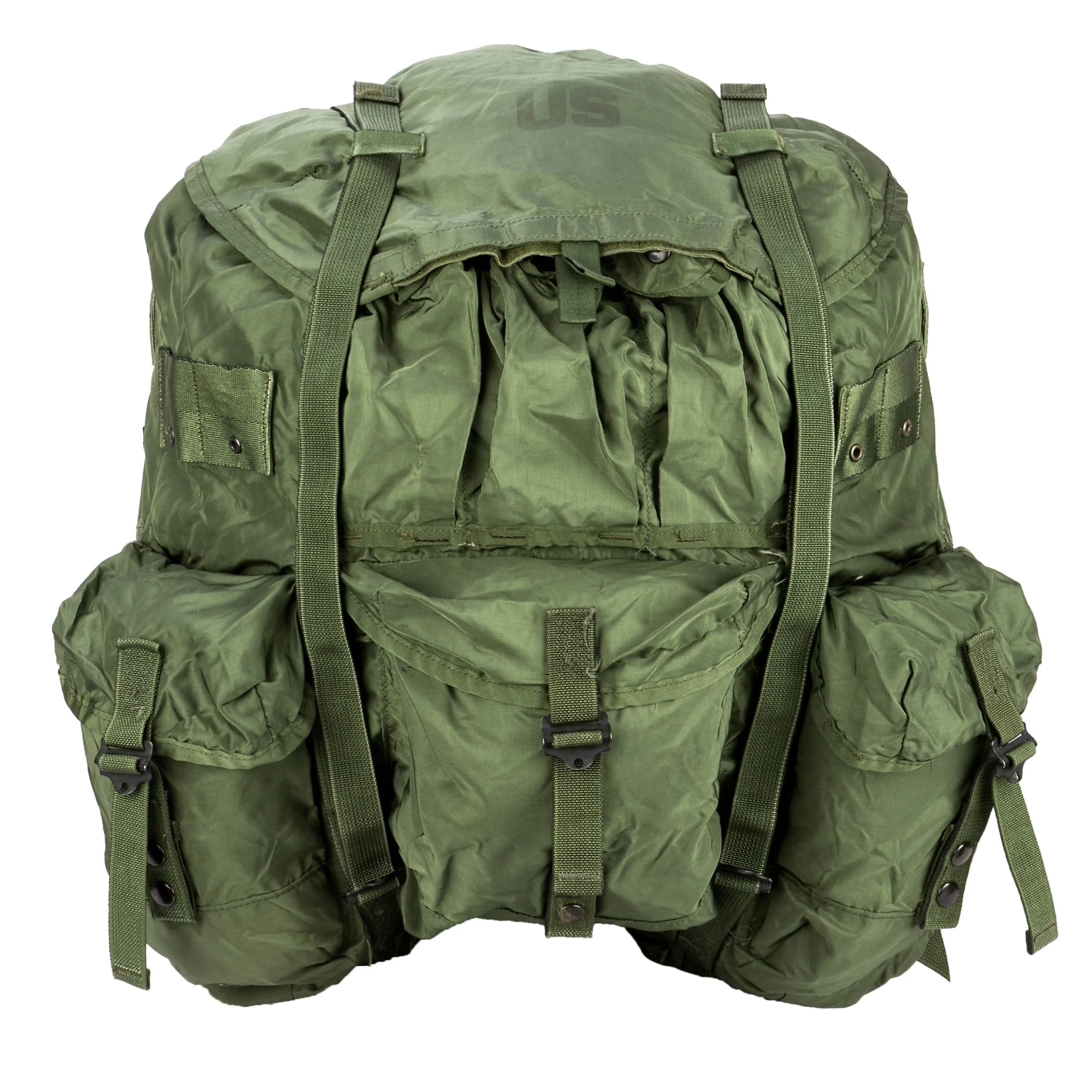 Der legendäre Rucksack ALICE Pack der GI`s aus 100% reißfestem, wasserabweisendem Nylon hat 6 feste, aufgesetzte Außentaschen. Aufnahmepunkte für weiteres Ausrüstungsmaterial auf Basis des ALICE Systems. Separates Außengestell mit gepolsterten Schulter- und Beckengurten (Farbe des Außengestells variiert teilweise zwischen woodland und oliv. Keine Auswahl möglich!)