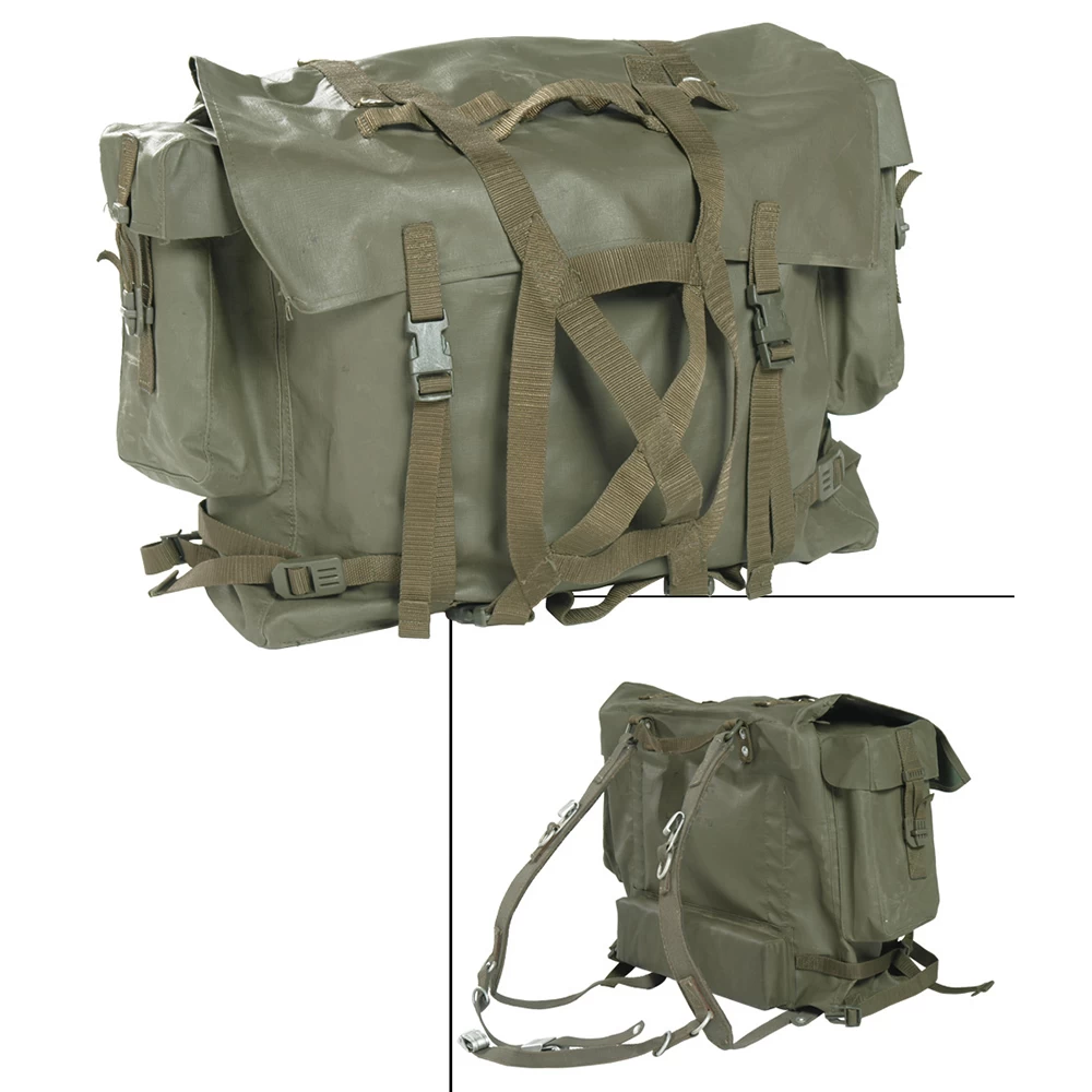 Dank gummierter und wasserabweisender Beschichtung eignet sich der Rucksack auch bei nasser Umgebung. Im großen Hauptfach und den beiden Seitentaschen lässt sich ausreichend Ausrüstung aufbewahren. Der Rucksack kann mit den verstellbaren Schultergurten getragen werden. Für einen besseren Tragekomfort ist der Lendenbereich gepolstert.