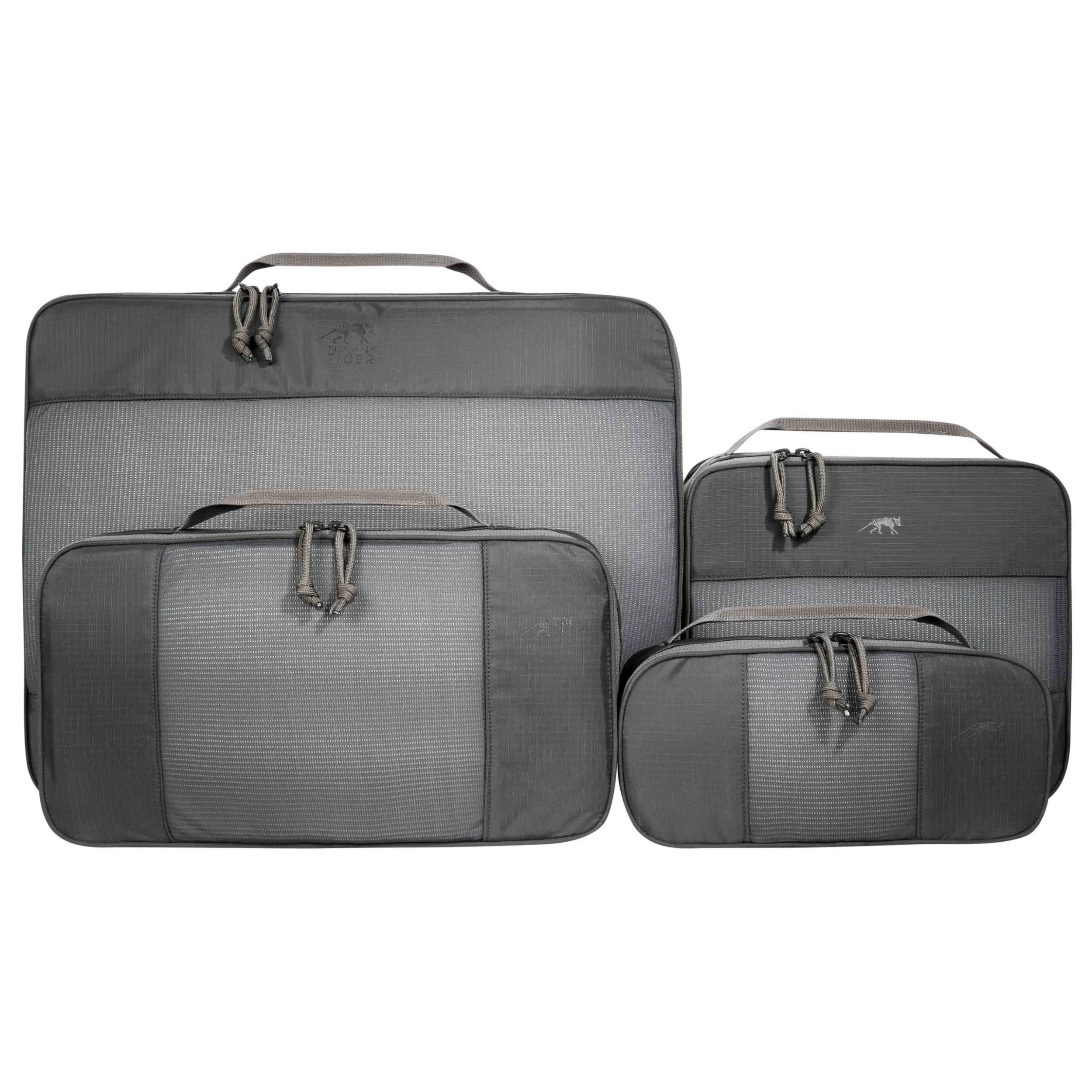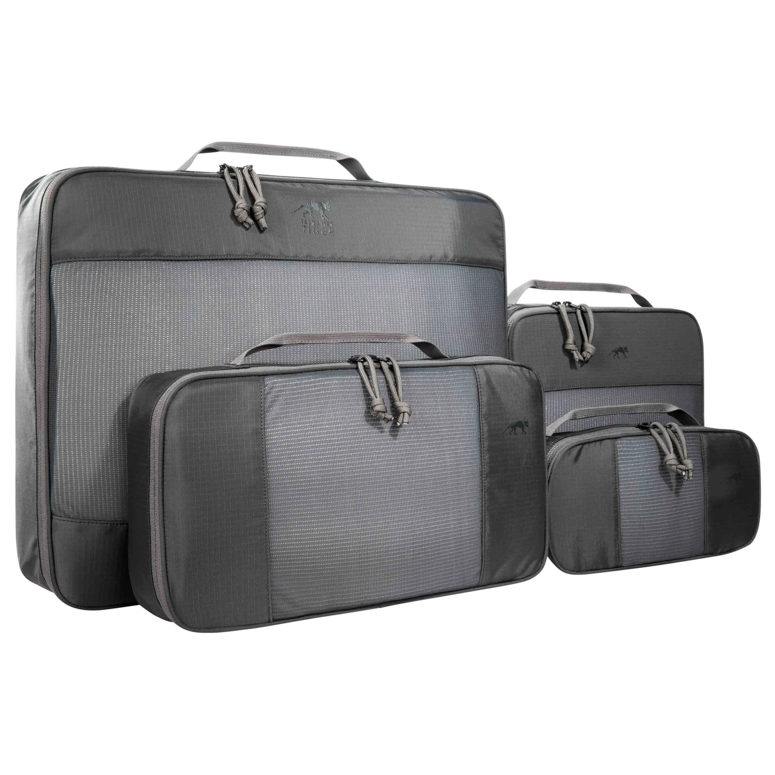 Das Tasmanian Tiger Mesh Pocket Set XL ist ein vierteiliges Taschenset in aufeinander abgestimmten Größen, welche sich optimal zum Sortieren des Gepäcks und als Ordnungssystem in Taschen und Rucksäcken eignen. Die quaderförmigen Taschen bestehen aus einer Mesh-Oberseite, sodass darin aufbewahrte Bekleidung oder Ausrüstung durchlüftet wird. Die drei kleineren Taschen haben zusammen die gleiche Grundfläche wie die große und können im leeren Zustand darin verstaut werden sowie beim Packen einer Reisetasche oder eines Rucksacks genau obenauf gepackt werden.