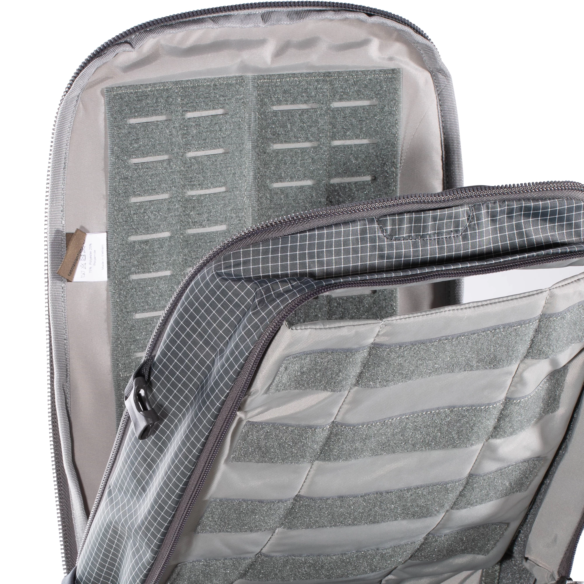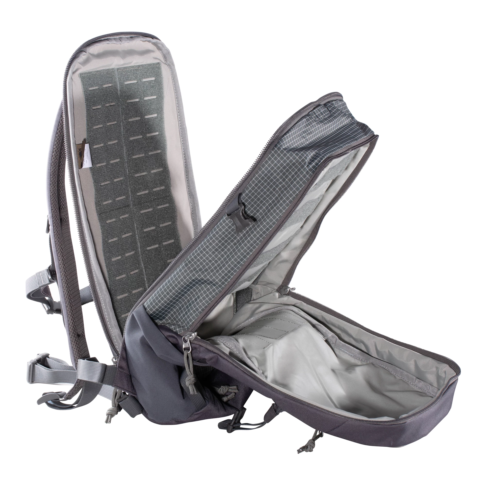 Der Tasmanian Tiger Rucksack City Daypack 20 titan grau ist ein unauffälliger Tagesrucksack und eignet sich daher optimal für Undercover-Einsätze und für ziviles Tragen. Er verfügt über die für Tasmanian Tiger bekannte taktische Innenaufteilung, wirkt aber durch den neutralen Tatonka-Schriftzug dezent. Er verfügt über ein Hauptfach und ein separates Waffenfach, bei welchem die Reißverschlussanhänger für besseres Handling verlängert wurden. Die untere Fronttasche lässt sich einklappen und ermöglicht die Nutzung der dann sichtbaren Klettpatchflächen für Einsatzkräfte. In den elastischen Seitentaschen lassen sich z.B. Trinkflaschen gut unterbringen.