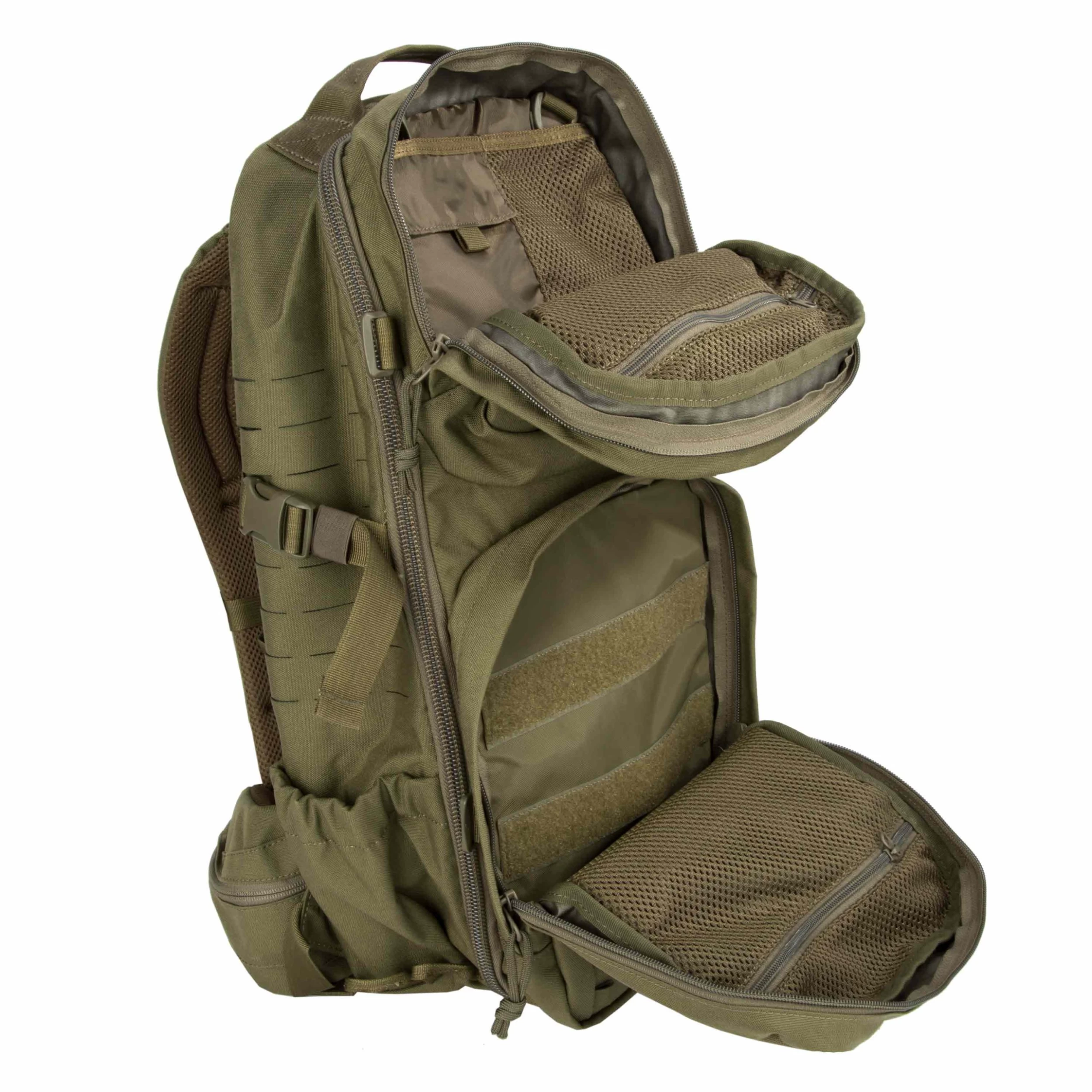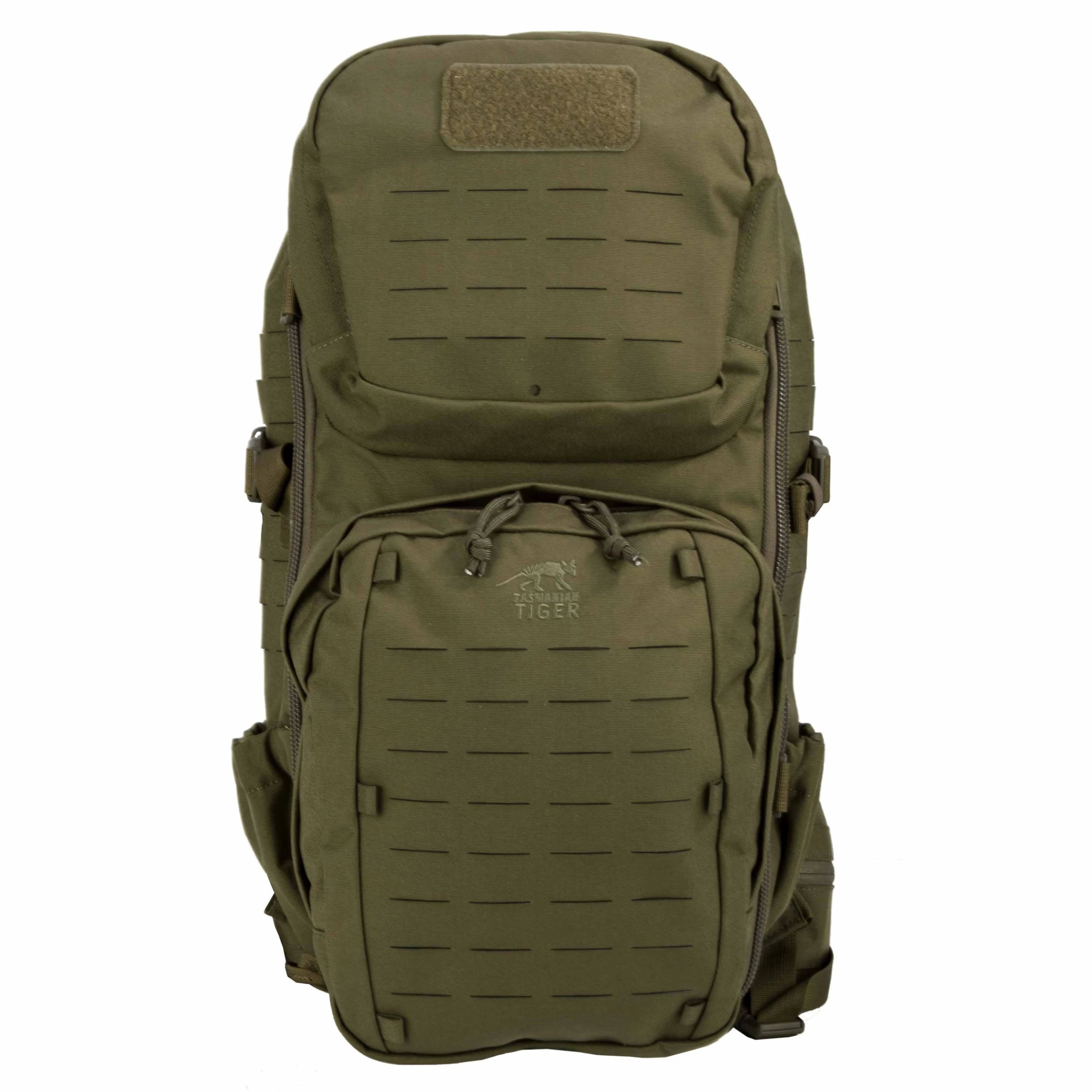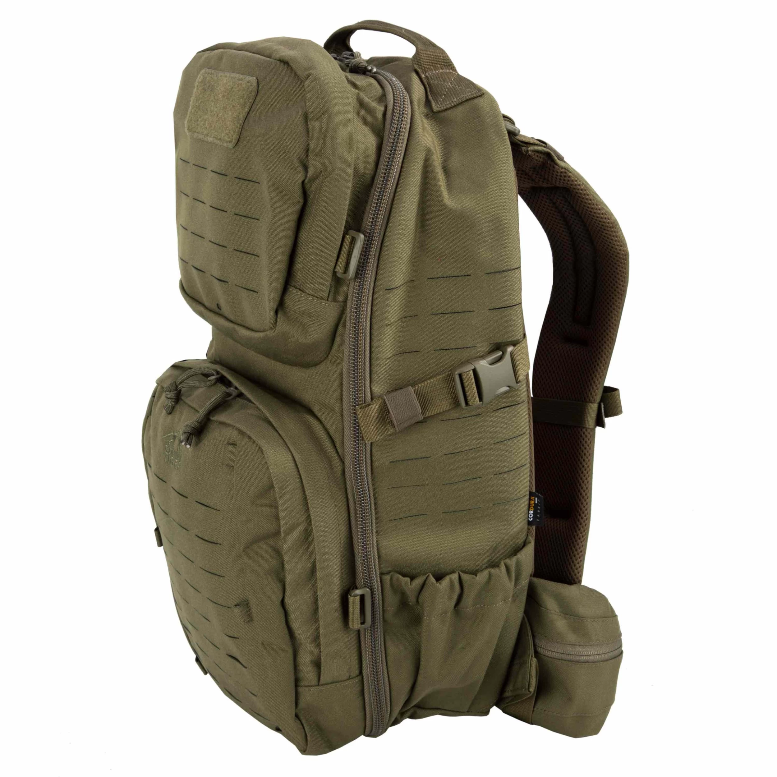 Der Tasmanian Tiger Modular Combat Pack ist ein kleiner Kampfrucksack mit Aufsatztaschen. Er bietet außen einen aufgeräumten Look und kann dank durchdachter Reißverschlussführung auch als Toploader verwendet werden. Die Laser Cut Molle-Schlaufen außen sowie Molle-Klett im Inneren ermöglichen die Kombination mit weiterer Ausrüstung, sodass Sie den Rucksack für unterschiedliche Situationen entsprechend beladen können. Soll der Combat Pack auf einer Weste getragen werden, lassen sich Schultergurte und Hüftgurt einfach abnehmen.