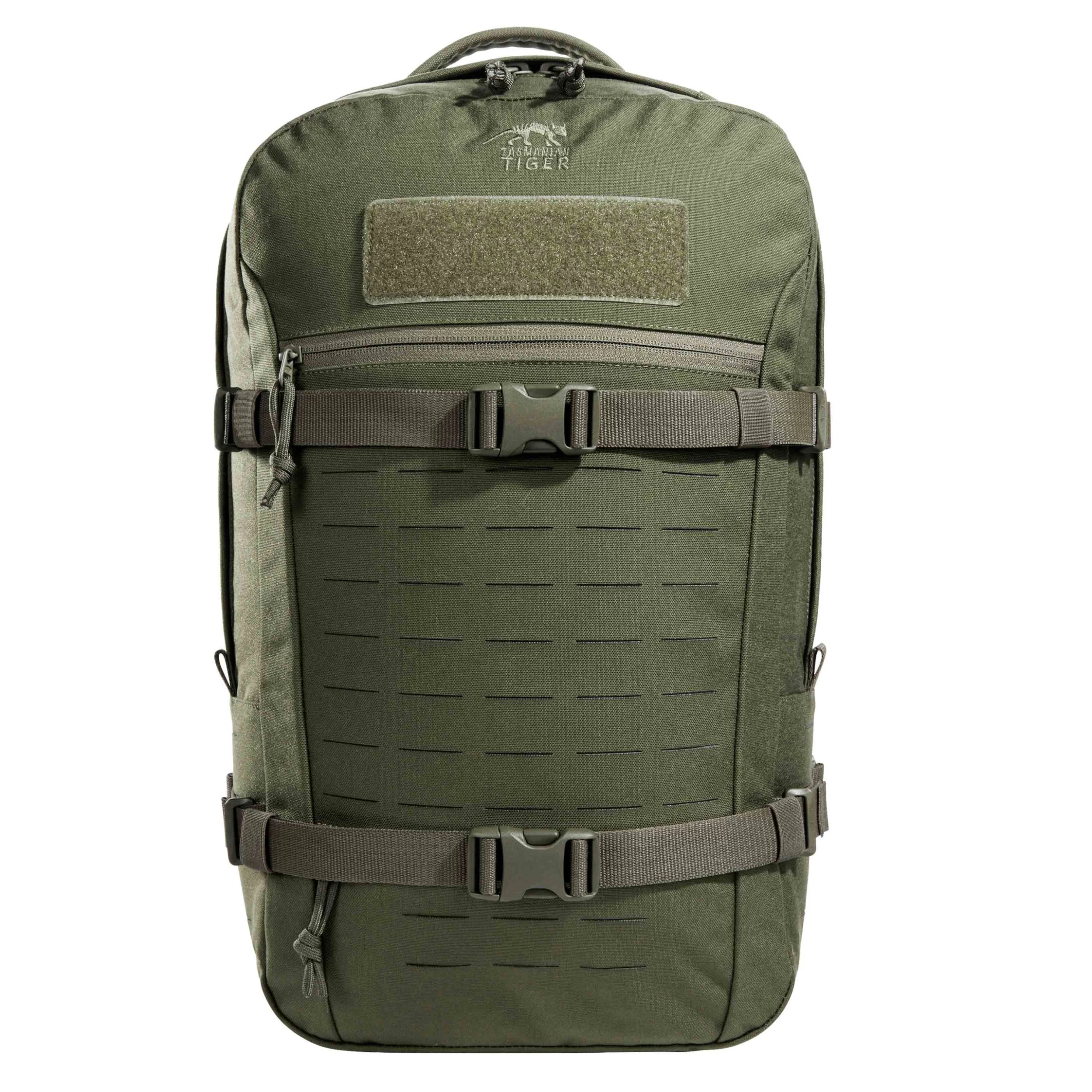 Der Tasmanian Tiger Rucksack Modular Daypack XL ist ideal für den Transport leichter Lasten im Alltag. Er verfügt über ein großes Hauptfach, welches rückseitig mit Molle-Klett versehen ist und somit mit zusätzlichen Taschen eingerichtet werden kann. Es ist auf die Bestückung mit einem 15,4”-Laptop ausgelegt. Das flache Reißverschluss-Frontfach ermöglicht das schnell erreichbare Aufbewahren von Dokumenten. Dank Lasercut-Molle-System auf Front und Seiten kann der Tagesrucksack je nach Bedarf erweitert werden.