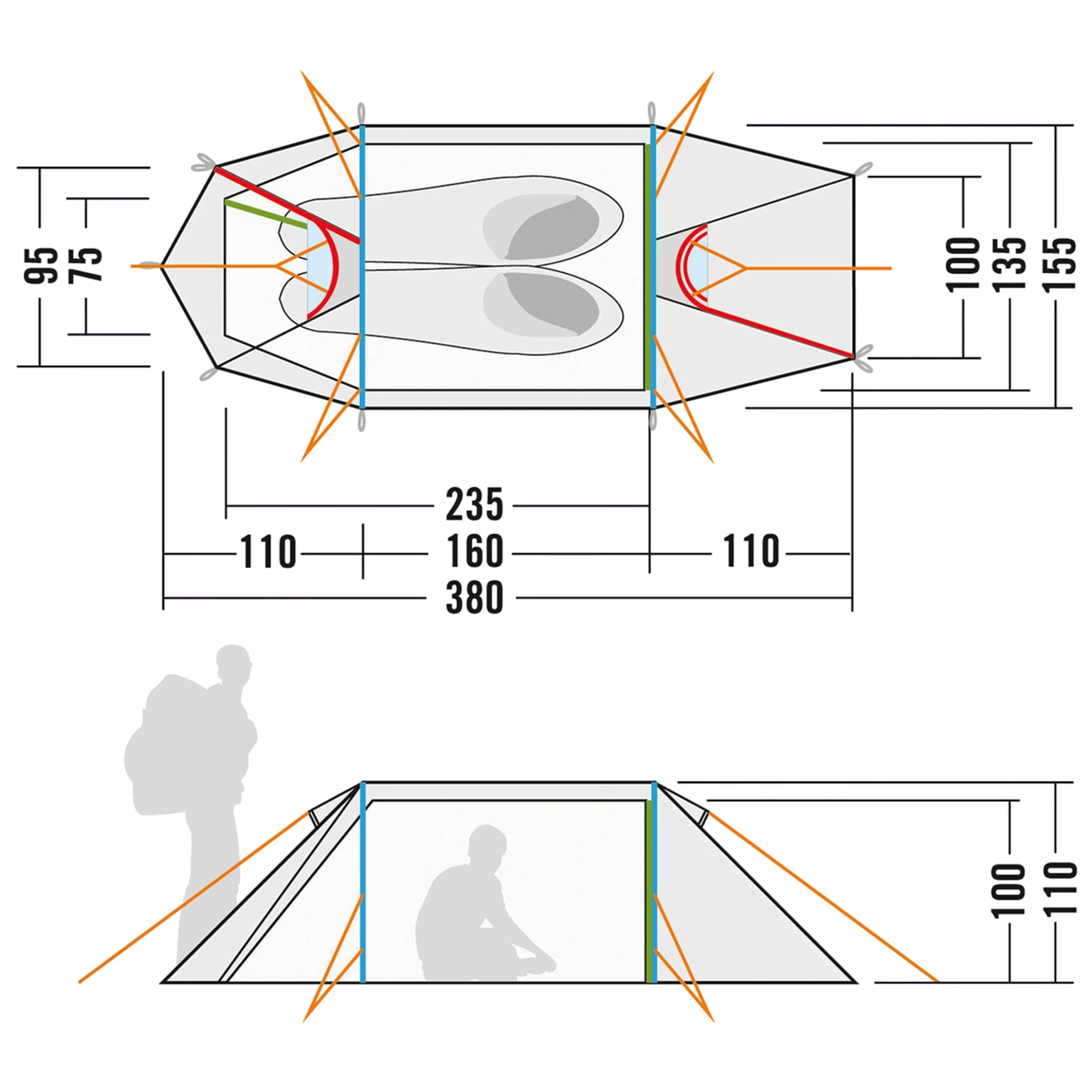 – Extra langes Innenzelt (235 cm) für mehr Liegekomfort