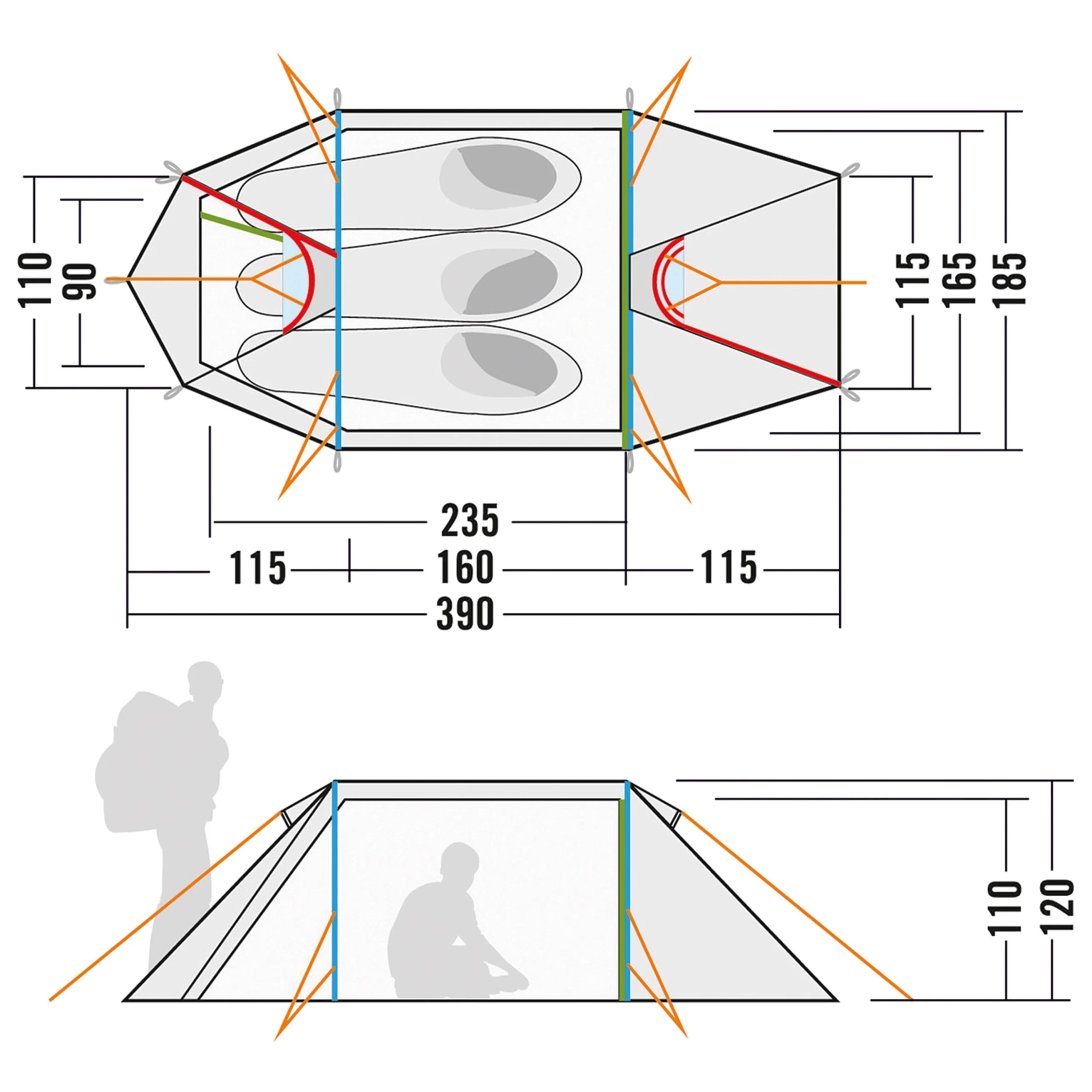 Das Tatonka Tunnelzelz Arctis 3.235 PU ist ein Zelt, in dem drei Personen komfortabel liegen können. Das lange Innenzeltmaß entsteht durch die zwei Gestängebögen und den steilen Wänden, sodass viel Raum genutzt werden kann. Mit Apsis zur Gepäcklagerung und einem zweiten Eingang auf der Rückseite. So wird auch das Belüften vereinfacht.